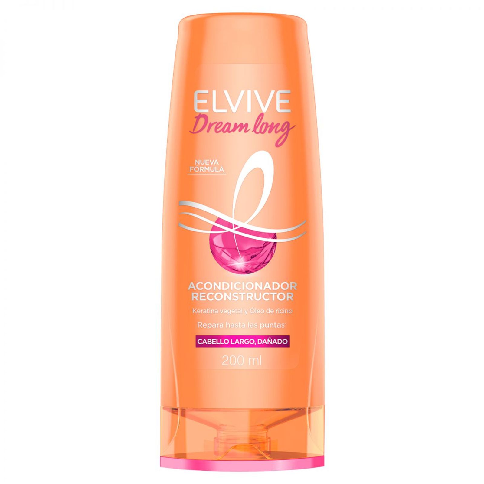 Nuestro Acondicionador Reconstructor, es perfecto para olvidarte del cabello largo dañado y frágil. Y por supuesto, también limpia tu cabello. Su fórmula con efecto Anti-Sal°, está enriquecida con un potente cóctel. Elvive Dream Long para cabello largo, dañadotiene como beneficio: 1. Con Keratina Vegetal, reconstruye tu cabello hasta las puntas.. 2. Con Óleo de Ricino, nutre, le da brillo y ayuda a mantener largo tu cabello. Aplicar en puntas y largos sobre el cabello mojado después del SHAMPOO RECONSTRUCTOR, dejar actuar y enjuagar. Utilizar los otros productos de la línea ELVIVE DREAM LONG. Evítese el contacto con los ojos. En caso de contacto con los ojos, enjuague inmediatamente. Manténgase fuera del alcance de los niños. Si observa alguna reacción desfavorable suspenda su uso.