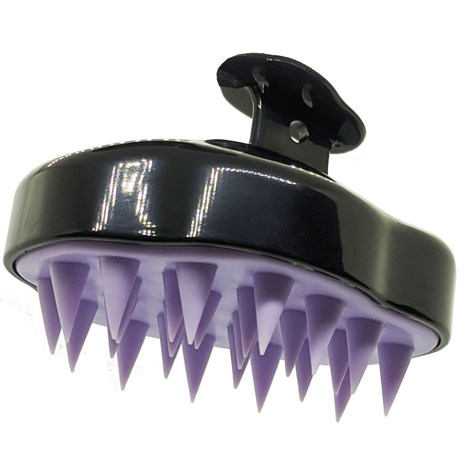 Cepillo de maseaje manual con cerdas de silicona suaves que estimula el flujo sanguineo al cuero cabelludo. Úselo seco de masajeador o mojado en la ducha para aplicar shampoo