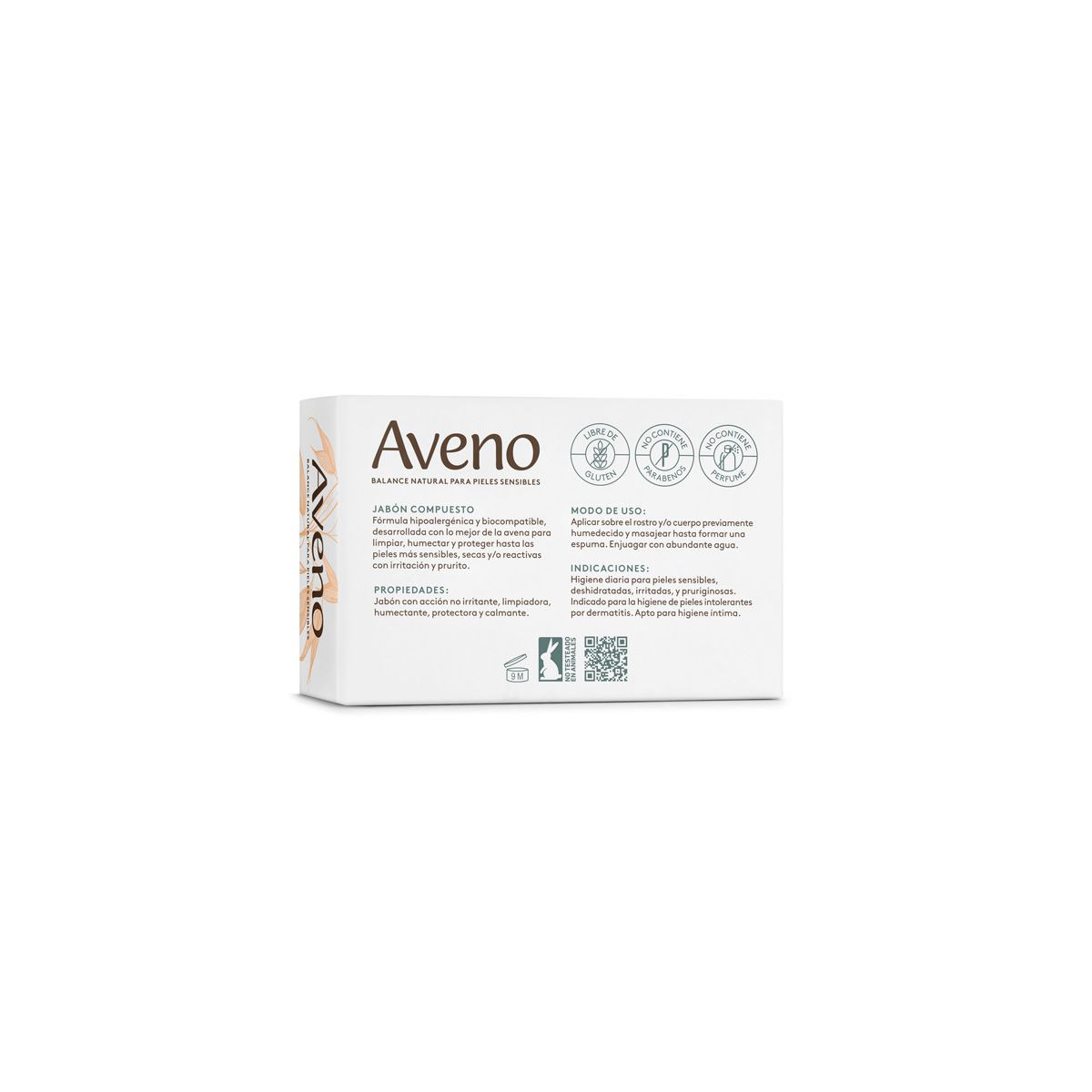 El jabón Aveno calma, limpia y protege las pieles sensibles. Recomendado para pieles reactivas y deshidratadas. Gracias a sus propiedades emolientes otorga suavidad y ayuda a limpiar impurezas, regenerando la piel. Se recomienda su utilización en la higiene diaria corporal y facial. Puede usarse solo o en combinación con otros tratamientos dermatológicos o cosméticos. Es un gran coadyuvante para casos de acné, eccemas, foliculitis y dermatitis.