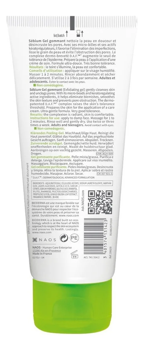 El gel exfoliante Sébium es el único exfoliante que perfecciona la textura de la piel, cierra los poros e ilumina la tez, a la vez que previene la formación de imperfecciones gracias al complejo patentado Fluidactiv™, que regula la calidad biológica del sebo.