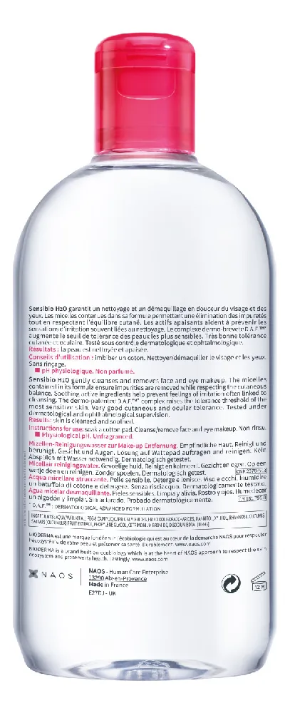 La tecnología micelar desarrollada por Laboratoire Bioderma se inspira en los lípidos celulares de la piel. Actúa en perfecta armonía con la piel y conserva la película protectora natural. Sensibio H2O está formulado con un pH fisiológico de alrededor de 5,5, por lo que respeta el equilibrio biológico de la piel, algo esencial para mantener la piel sana
