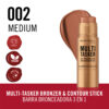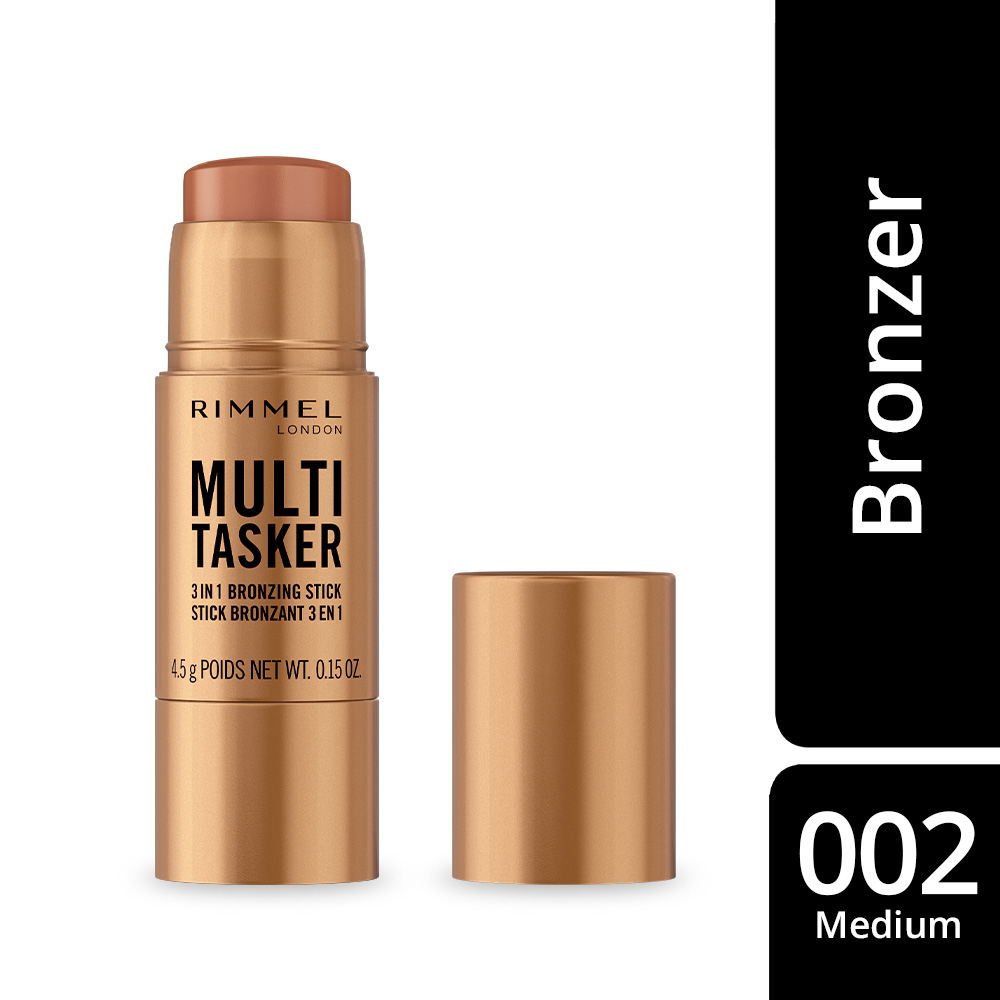Un bronceador en barra multiusos que se funde con la piel para lograr un bronceado cálido que no se desvanece y un look naturalmente esculpido y definido. Esculpe, broncea y da brillo en cualquier lugar. • Este bronceador en barra multiusos de Rimmel tiene una fórmula vegana, cremosa y ultra fácil de difuminar para lograr un brillo bronceado y esculpido fácil de lograr • Con pigmentos que reflejan la luz para un brillo radiante • Con vitamina C y vitamina E • Acabado fresco, húmedo y transparente • Dura todo el día • Maquillaje vegano dermatológicamente probado y no comedogénico • Apto para pieles sensibles • Certificado internacional libre de crueldad animal