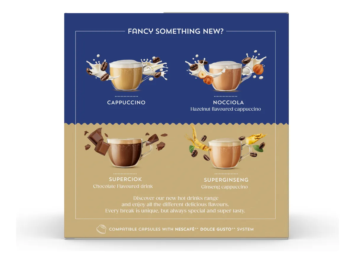 Ya sea para comenzar el día o disfrutar de un descanso a media tarde, Crema Superiore ofrece un café de calidad de cafetería, reconfortante y revitalizante a la vez. Compatible con las máquinas Dolce Gusto, este práctico formato de cápsulas lleva la maestría cafetera italiana directamente a tu hogar.