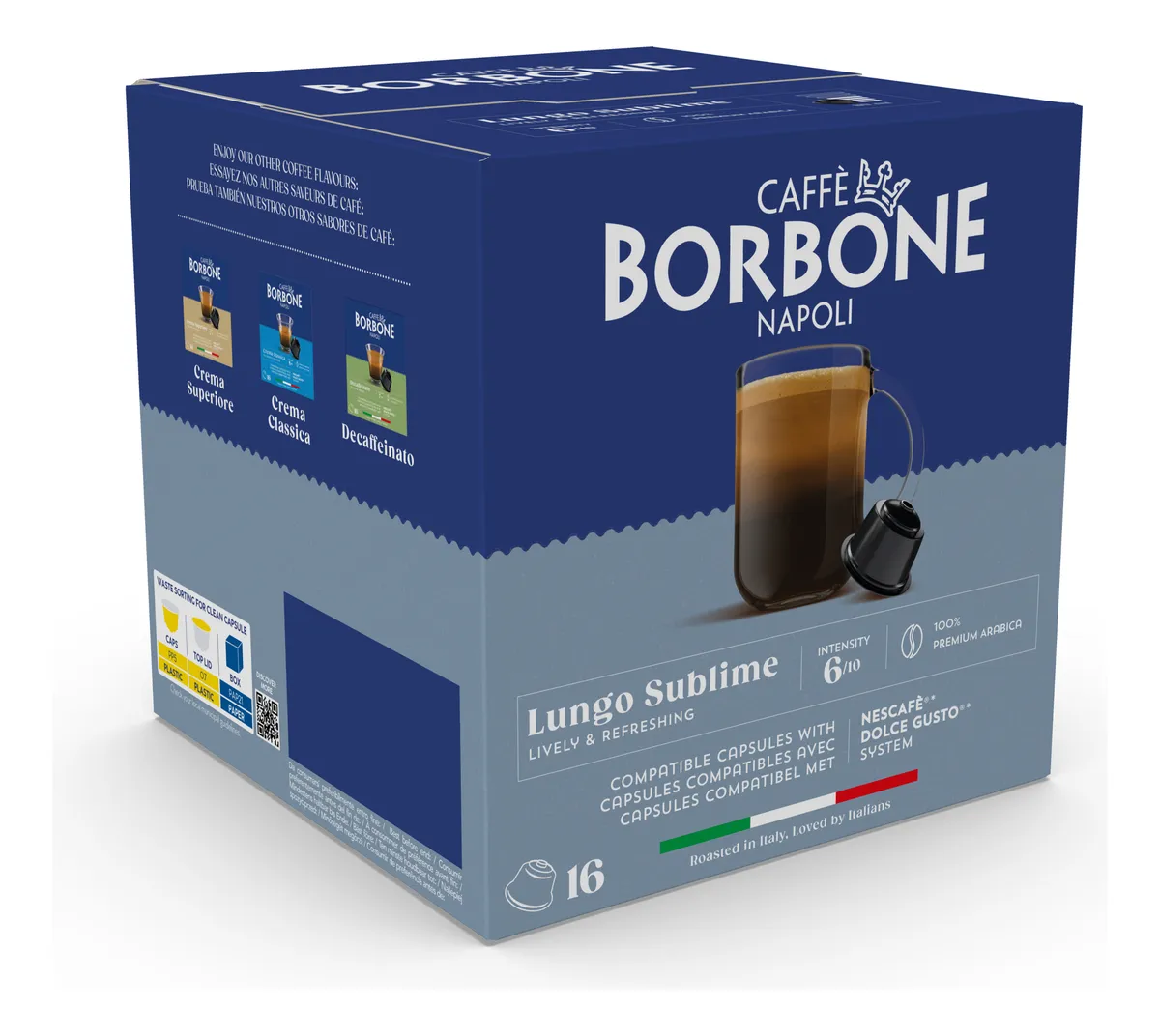 Con una intensidad de 6/10, Lungo Sublime ofrece un café aterciopelado con un perfil complejo y equilibrado que deleitará tus sentidos. Cada cápsula lleva un pedacito de tradición italiana directamente a tu taza. Perfecto para quienes aprecian un sabor delicado y elaborado con precisión que te transportará al corazón de Nápoles.