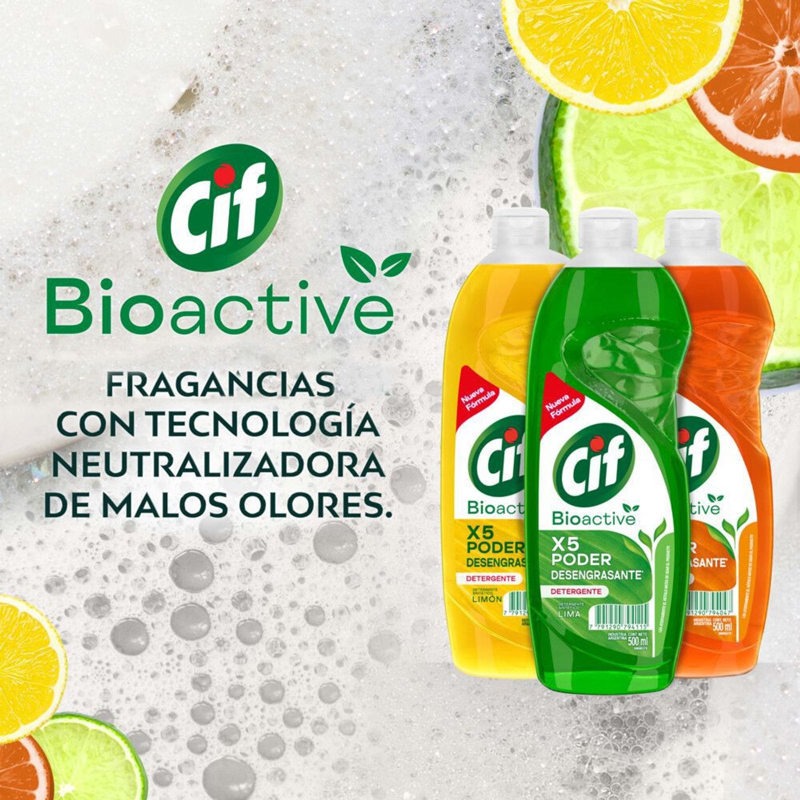 Cif Active Gel Detergente Lavavajilla Concentrado Limón (300 ml), con fórmula evolucionada, se mantiene por más tiempo en tu esponja versus lavavajillas regulares. Si disfrutaste de una comida un poco grasosa o aceitosa, el detergente de platos Cif Active Gel Limón Verde sin dudas te va a salvar. La grasa se adhiere a los platos y plásticos, y los aceites son inmunes al efecto del agua: lo que necesitas es un detergente líquido como alguno de la línea de Cif Active Gel, que terminan con la grasa de modo definitivo dejando los platos limpios y usando menos cantidad de producto. Cif Active Gel tiene una fórmula exclusiva, diferente a la de otros detergentes disponibles en el mercado. Al colocarse en la esponja, y en contacto con el agua, Cif Active Gel aumenta significativamente su viscosidad, formando un gel en el interior de la misma, que puede liberarse progresivamente a lo largo del lavado. De esta manera, mantiene la esponja cargada por más tiempo, y esto hace que tengas que recargarla menos veces con producto para lavar los platos. Los detergentes no sólo se utilizan para lavar la vajilla: si los diluís con agua, obtenés una solución excelente de limpieza. Para usarlo aplicá directamente en la esponja o diluí 1 cucharada en 3 litros de agua. Una vez que hayas terminado de lavar, enjuagá tu vajilla en agua caliente o fría.