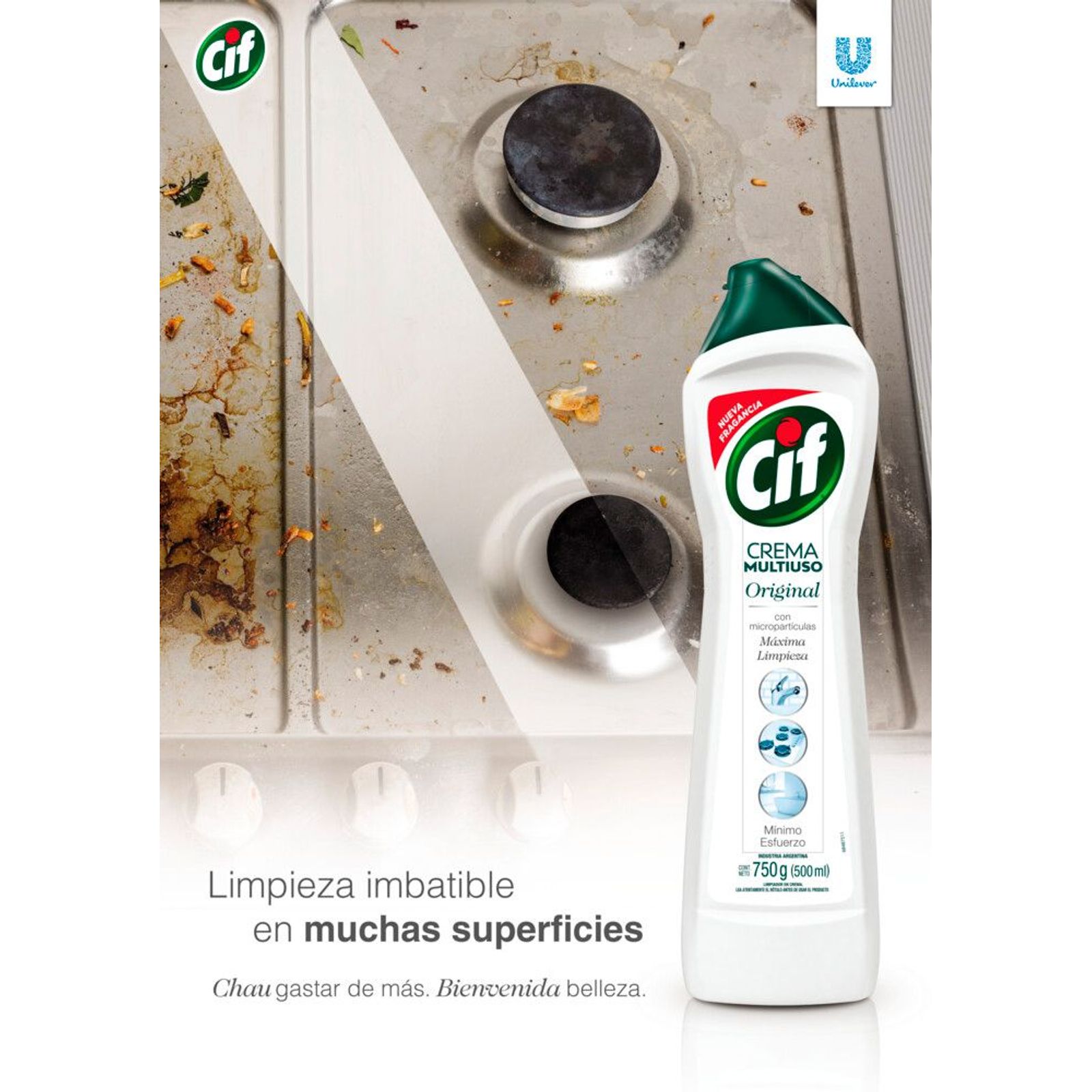 Limpiador en crema CIF Original Multiuso revela la belleza de tus objetos una y otra vez. Remové de manera más fácil las suciedades más difíciles del baño, cocina y otras superficies con los limpiadores multiuso de CIF. CIF Crema tiene una fórmula con micropartículas que garantiza una máxima limpieza y mínimo esfuerzo. CIF Crema Multiuso se renovó. Con la misma efectividad y rendimiento que ya conoces, revela la belleza de tus objetos una y otra vez. Conseguí que tus superficies queden limpias y brillantes, como nuevas con los artículos de limpieza CIF. Una limpieza profunda lograda con tu mejor limpiador de superficies CIF.