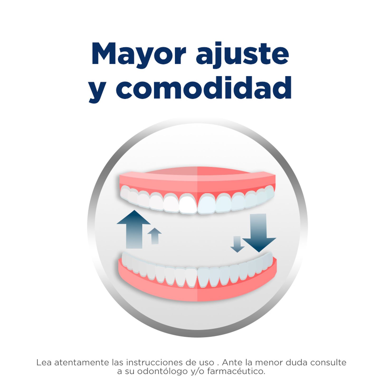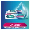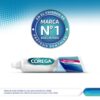 – Mantiene la prótesis firme hasta por 12 horas. – Forma un sello que ayuda a impedir la entrada de alimentos, entre la prótesis y la encía. – Ayuda a prevenir la irritación de las encías. – Mejora el ajuste y la comodidad de la prótesis. Los Adhesivos Corega te dan la fijación necesaria para continuar disfrutando tu día. Ultra Corega Crema Sin Sabor no tiene sabores agregados por lo que no va a interferir en los sabores de tus comidas favoritas. Ultra Corega Crema Sin Sabor es parte de la variedad de adhesivos Corega. Está libre de zinc y colorantes artificiales. ¿CÓMO USAR ULTRA COREGA CREMA SIN SABOR? Para Aplicar: Limpiar y secar la prótesis dental. Aplicar Ultra Corega Crema en pequeñas tiras, no muy cerca de los bordes de la prótesis dental, como se muestra en el diagrama del envase. Enjuagar la boca antes de colocarse la prótesis dental. Acomodar la prótesis correctamente en la boca y presionar firmemente por unos segundos para asegurar la fijación. Para Remover: – Enjuagar la boca con agua. – Quitar la prótesis suavemente con un pequeño movimiento. – Remover los residuos de adhesivos de la prótesis y de la boca con agua tibia y un cepillo suave. – Utilizar las tabletas limpiadoras Corega Tabs para una mejor limpieza de la prótesis y posteriormente enjuagarla con agua. Recomendaciones: – La primera vez utilizar una pequeña cantidad. – Utilizar más si es necesario. – Demasiado adhesivo se puede desbordar. – Si esto ocurre utilizar menos cantidad la próxima vez. Puede tomar algunas aplicaciones hasta encontrar la cantidad adecuada de adhesivo. Aplicar una vez por día para una fijación segura. Si necesita aplicar más de una vez al día consultar a su odontólogo. Ingerir pequeñas cantidades de este producto, utilizado según lo indicado, puede ocurrir y no es perjudicial. Visitar periódicamente a su odontólogo para mantener la prótesis bien adaptada. Las prótesis mal adaptadas pueden afectar tu salud. Conservar el envase bien tapado. Para que la punta no se obstruya, mantener la tapa y la boquilla seca.