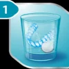 Coloca una tableta de Corega Tabs Pro Ortodoncia en un vaso que contenga suficiente agua tibia (no caliente) para cubrir el aparato dental removible.