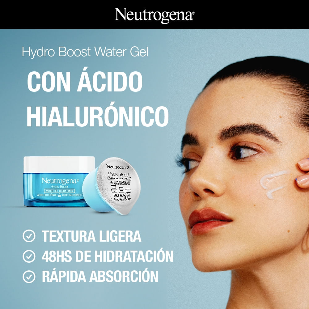 El hidratante facial NEUTROGENA HYDRO BOOST Water Gel hidrata intensanmente la piel por 48 horas. Contiene ácido hialurónico, estimula la renovación de la piel y ayuda a restablecer los niveles saludables de agua, fortaleciendo su barrera natural. Su textura es ultraliviana y de rápida absorción.