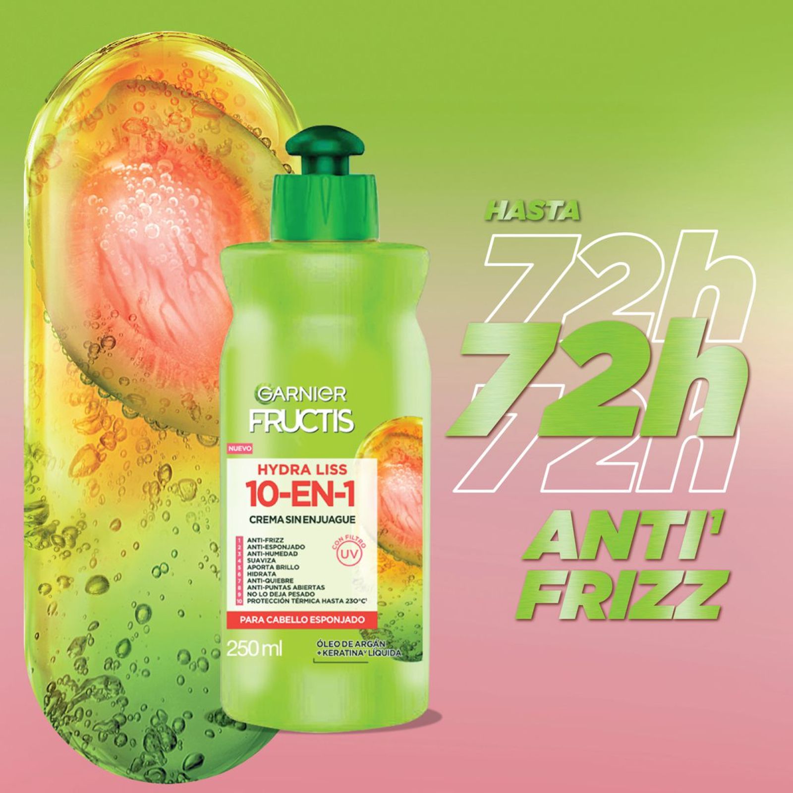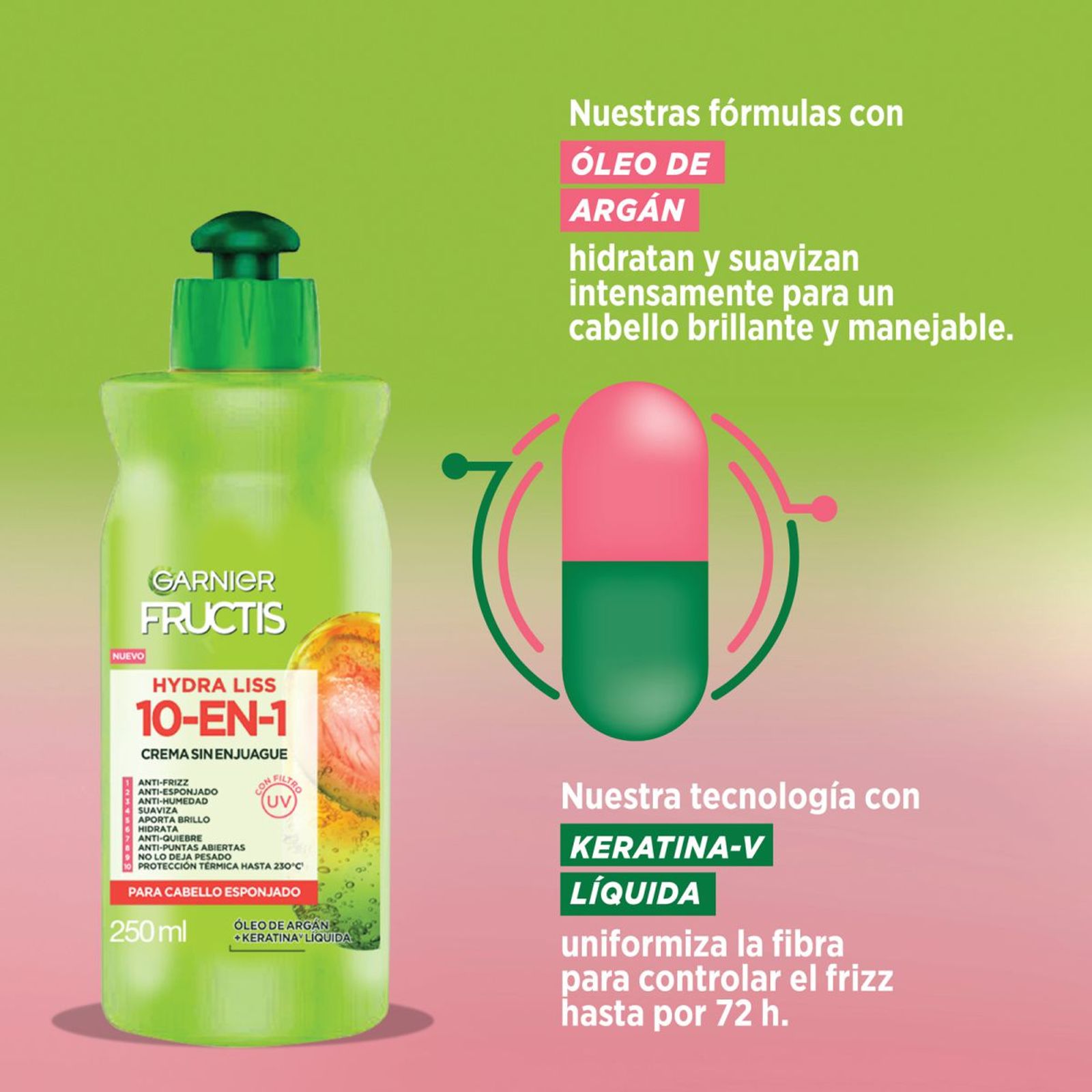Crema para peinar Hydra Liss 10 en 1: Control del frizz, anti-esponjado, protección contra la humedad, suavidad, brillo, hidratación, anti-quiebre, puntas selladas, ligereza y protección térmica hasta 230°C. ¡Todo en un solo producto!