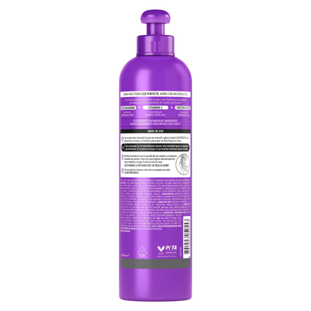 Nueva Crema para peinar Sedal Liso Perfecto ahora con Infusión Activa, nueva fórmula que posee una combinación exclusiva de óleo de macadamia, vitamina C y proteína de seda para que tu pelo luzca liso y fuerte.
