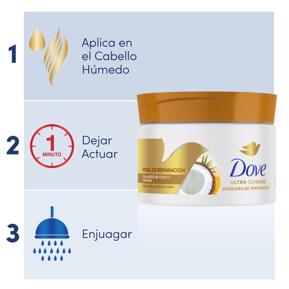 Crema tratamiento 10-1 Dove Óleo Nutrición Nueva máscara de tratamiento 10-1 Dove Nutrición + Fusión de óleos con exclusiva tecnología Bio-Protein Care, 100% compatible con la fibra natural de tu pelo. Tu cabello nutrido, suave y con frizz controlado. Su exclusiva fórmula, con tecnología BIO-NUTRICIÓN con nutrientes y péptidos, trabaja en armonía con la biología natural del cabello para nutrirlo y repararlo en cada uso. Este tratamiento para el pelo tiene la tecnología Bio-Protein Care, actúa sobre las proteínas naturales, tanto en el exterior como en el interior de la fibra capilar. 10 BENEFICIOS: Nutre, Controla el frizz, Sella la fibra, Controla el volumen, Fortalece la fibra, Cabello manejable, Recupera la suavidad, Bloquea la humedad, Brillo inmediato, Previene la resequedad. DESCRIPCION: Descubre la innovadora Máscara de Tratamiento Dove Reconstrucción + Keratina, potenciada con la exclusiva tecnología Bio-Protein Care. Diseñada para una perfecta armonía con la estructura natural de tu cabello, este producto revolucionario está formulado para reparar y proteger en cada aplicación. Este tratamiento para el pelo tiene la nueva tecnología Bio-Protein Care, esta máscara actúa de manera integral sobre las proteínas naturales que componen tu cabello, tanto en su exterior como en su interior. Sus ingredientes activos penetran profundamente para combatir la sequedad y los daños, devolviendo a tu cabello su vitalidad perdida. Con hasta 10 beneficios en un solo producto, experimenta una transformación completa: repara la fibra capilar, nutre desde el primer uso, protege contra el daño diario, reduce las puntas abiertas, previene el frizz, facilita el desenredo, ofrece protección térmica, devuelve el movimiento natural, brinda suavidad instantánea y recupera el brillo perdido. Para obtener resultados óptimos, simplemente aplica la máscara generosamente sobre el cabello húmedo, desde la mitad hasta las puntas, evitando las raíces. Masajea suavemente y deja actuar durante un minuto antes de enjuagar abundantemente. Además, puedes sentirte bien al usar este producto, ya que está aprobado por Peta Cruelty Free y está enriquecido con keratina vegetal para una experiencia de cuidado más consciente. Eleva tu rutina de cuidado capilar con Dove Reconstrucción + Keratina y experimenta la diferencia en cada mechón de tu cabello.