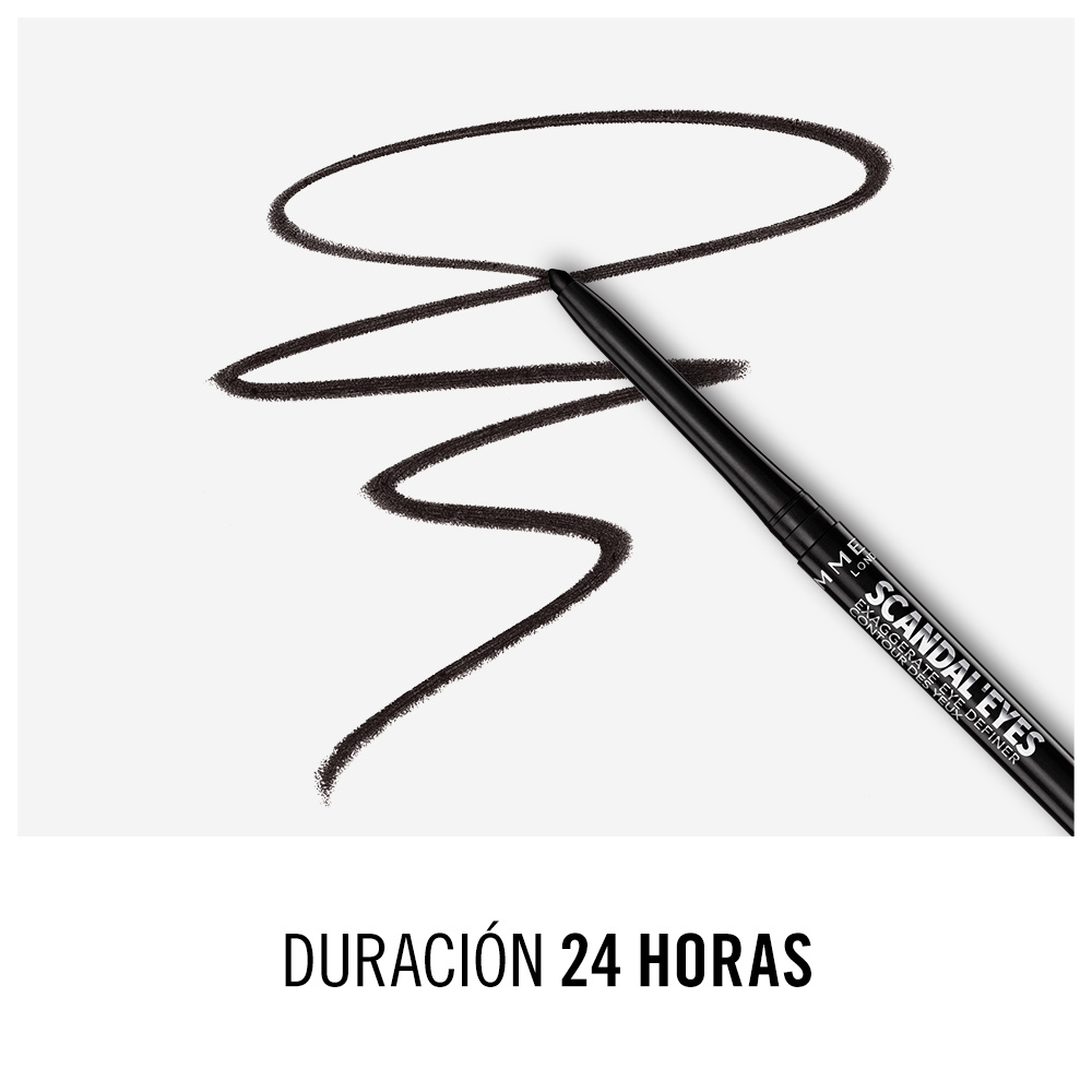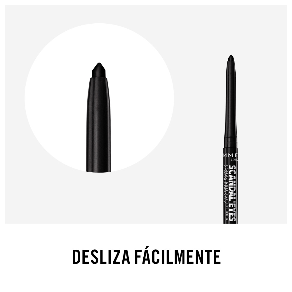 El delineador Scandal Eyes Exaggerate de Rimmel London, es un lápiz de ojos que se desliza sin esfuerzo y proporciona un alto impacto de color para definir y realzar tus ojos al instante. Su fórmula suave y repelente al agua, proporciona una duración extrema de hasta 24 horas. Disponible en 6 impresionantes tonos.