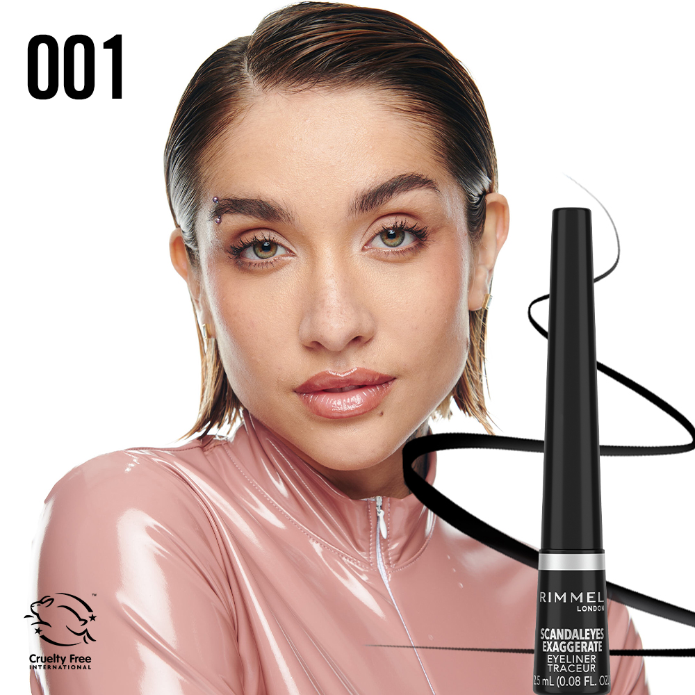 El delineador líquido 100% Exaggerate Black de Rimmel London tiene un color inteso, es resistente al agua y tiene un control óptimo para dibujar las líneas que quieras. Su fórmula líquida de alta pigmentación proporciona un delineado de ojos audaz con un acabado brillante. El aplicador de máximo control ayuda a crear una línea suave y precisas en el contorno del ojo. Además, es resistente al agua, a las manchas, no se corre y tiene una duración de hasta 24 horas.