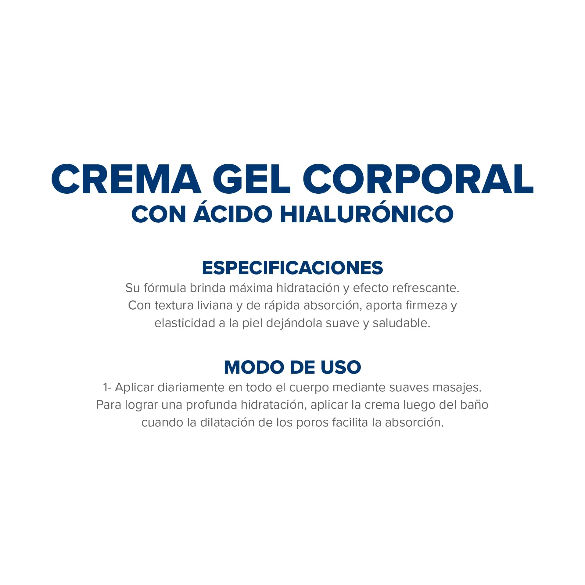 Su fórmula brinda máxima hidratación y efecto refrescante. Con textura liviana y de rápida absorción, aporta firmeza y elasticidad a la piel dejándola suave y saludable.