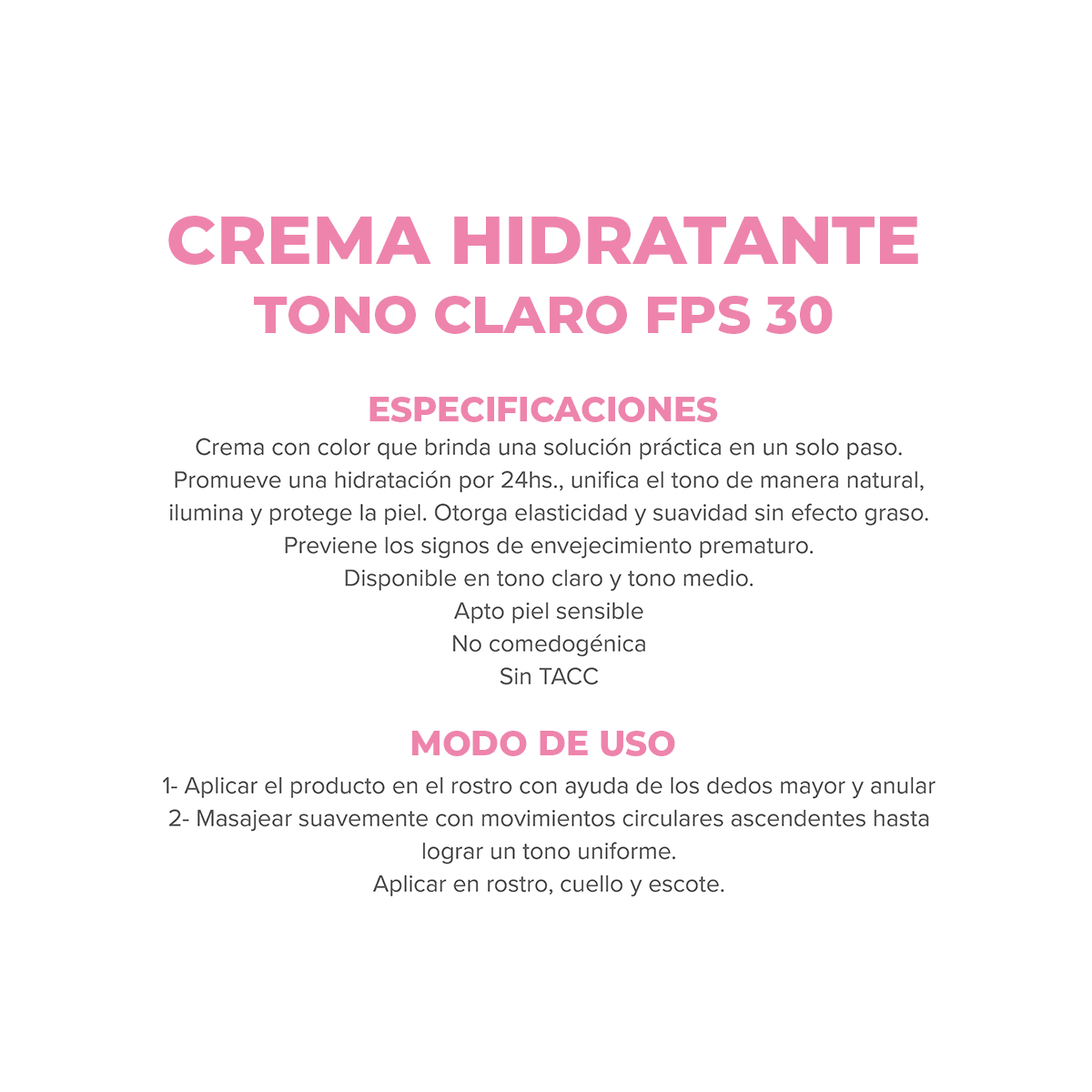 Crema con color que brinda una solución práctica en un solo paso. Promueve una hidratación por 24 h, unifica el tono de manera natural, ilumina y protege la piel. Otorga elasticidad y suavidad sin efecto graso. Previene los signos de envejecimiento prematuro. Disponible en tono claro y tono medio.