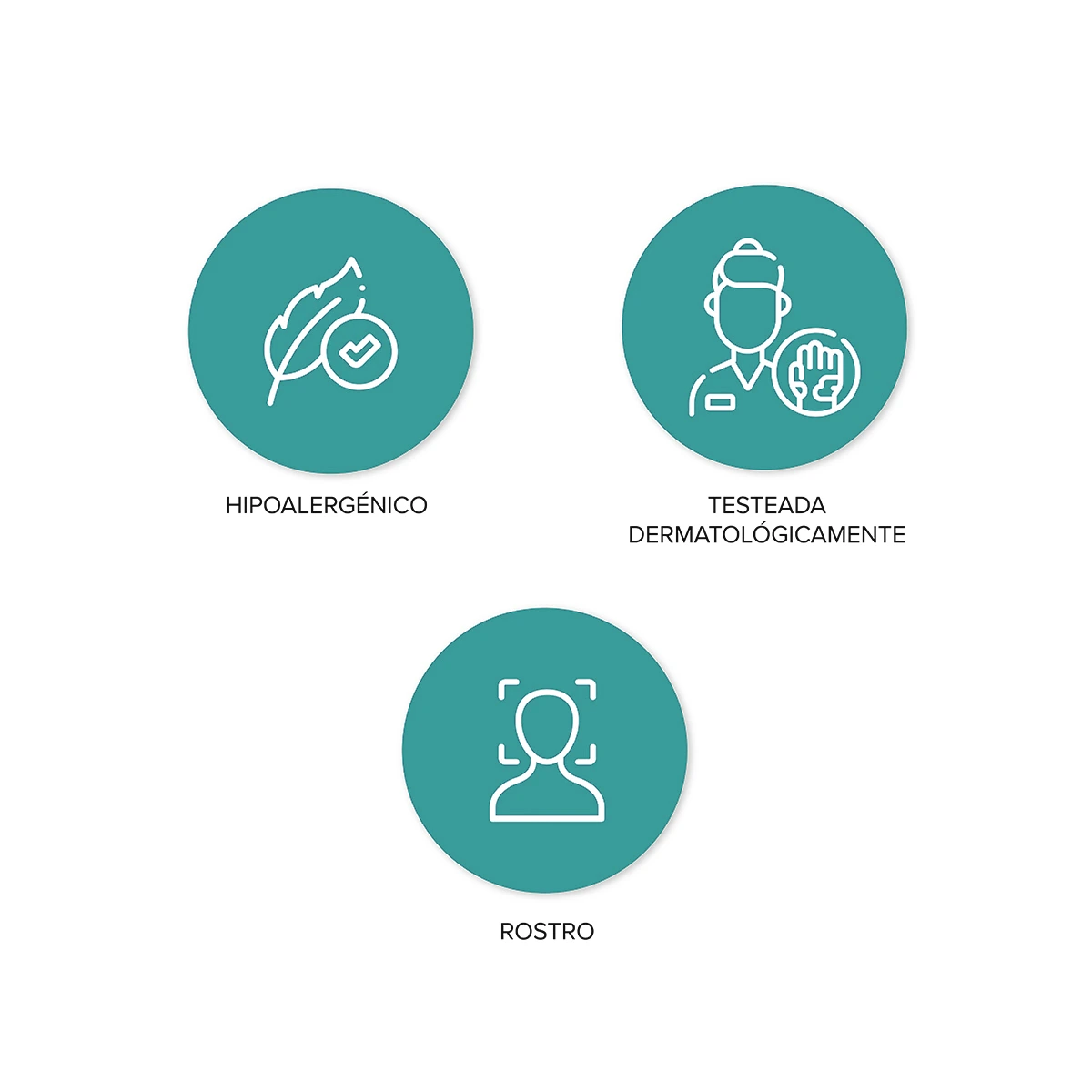Hipoalergénica – Apto piel sensible – Testeada dermatológica y oftalmológicamente – No comedogénica – Sin TACC