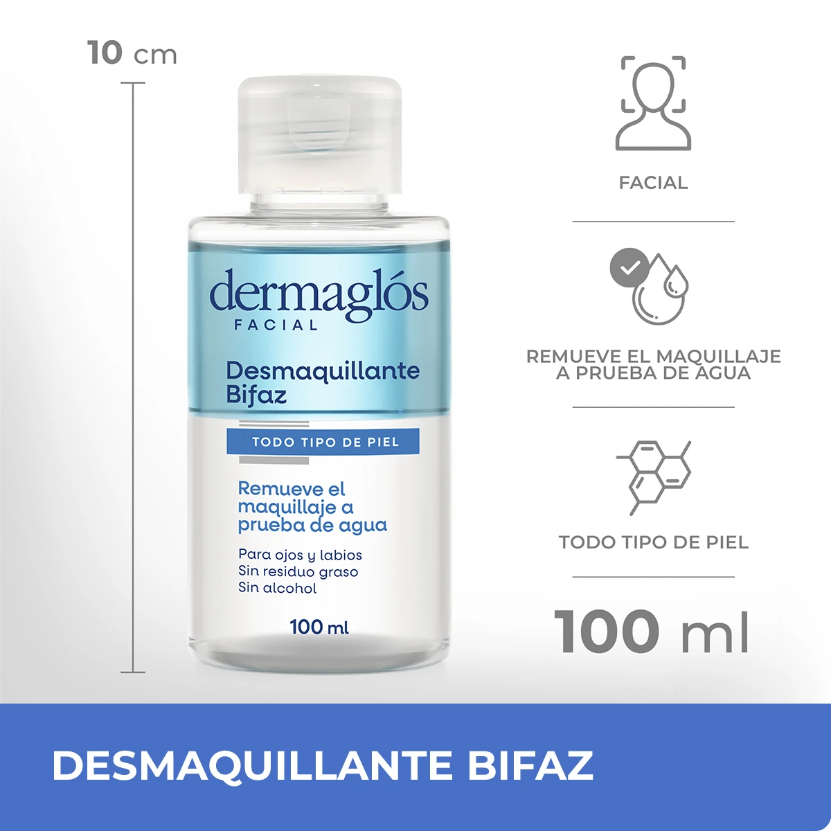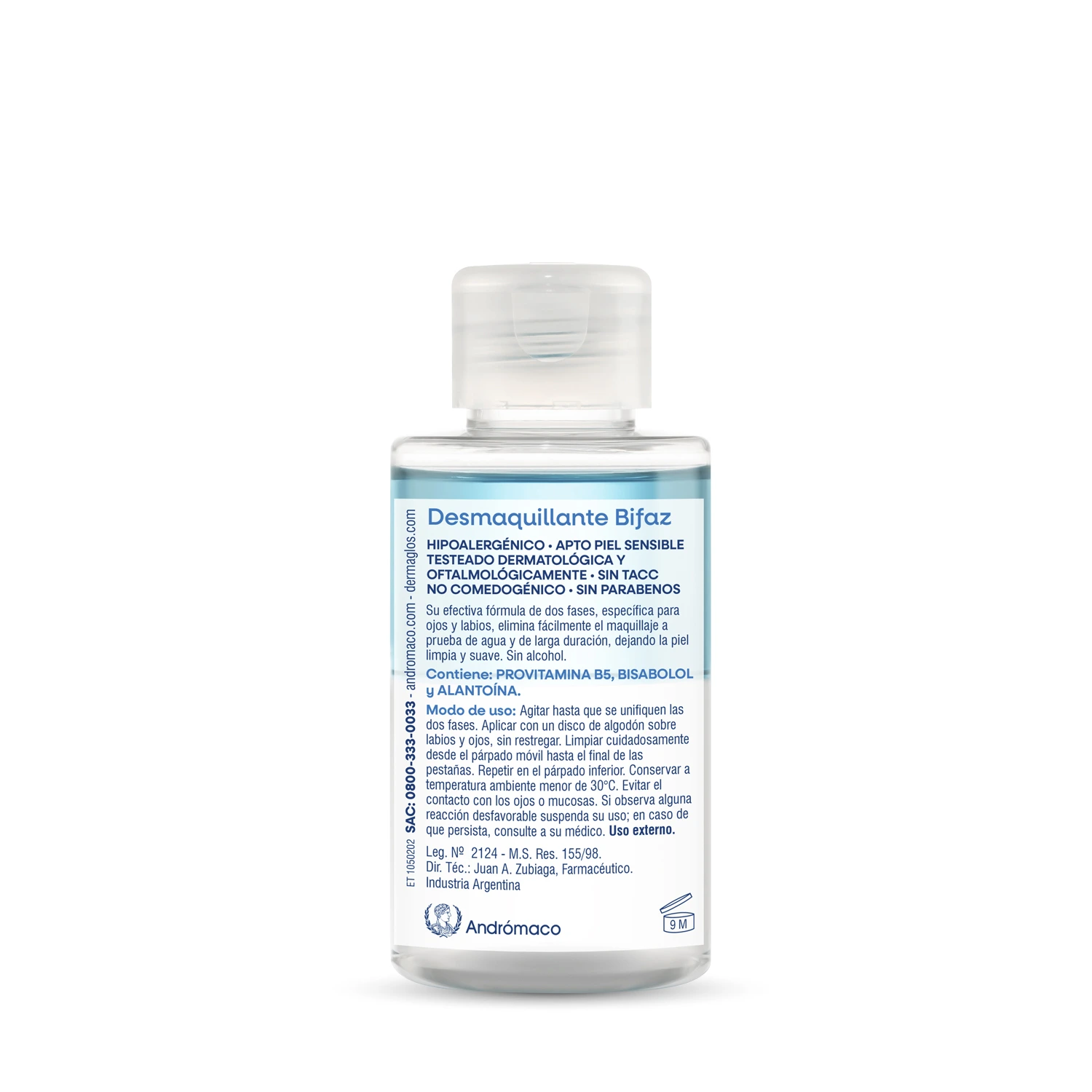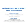 Su fórmula bifaz elimina fácilmente el maquillaje a prueba de agua y de larga duración. Sin residuo graso. Para labios y ojos. Indicado para todo tipo de piel.