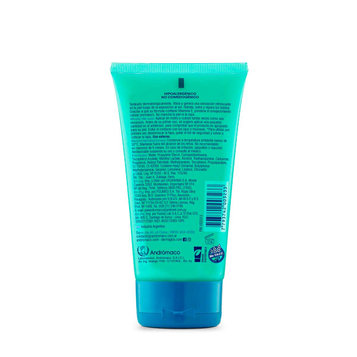 Alivia y regenera la piel.Sensación refrescante en la piel luego de la exposición al sol.Hidrata, nutre y repara los tejidos.Previene el envejecimiento prematuro de la piel.No mancha la piel ni la ropa.