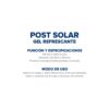 Alivia y regenera la piel. Sensación refrescante en la piel luego de la exposición al sol. Hidrata, nutre y repara los tejidos. Previene el envejecimiento prematuro de la piel. No mancha la piel ni la ropa.