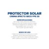 Efecto seco con acabado mate. No se pega la arena. Ofrece alta protección contra los rayos UV. Hidrata sin oleosidad. Textura liviana. Rápida