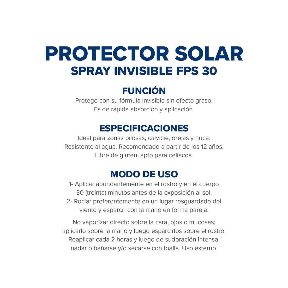 Ofrece alta protección contra los rayos UV. Posee una textura ultraliviana y transparente. Fórmula invisible sin efecto graso de fácil aplicación en formato spray, Rápida absorción. Ideal para zonas pilosas, calvicie, orejas y nuca.