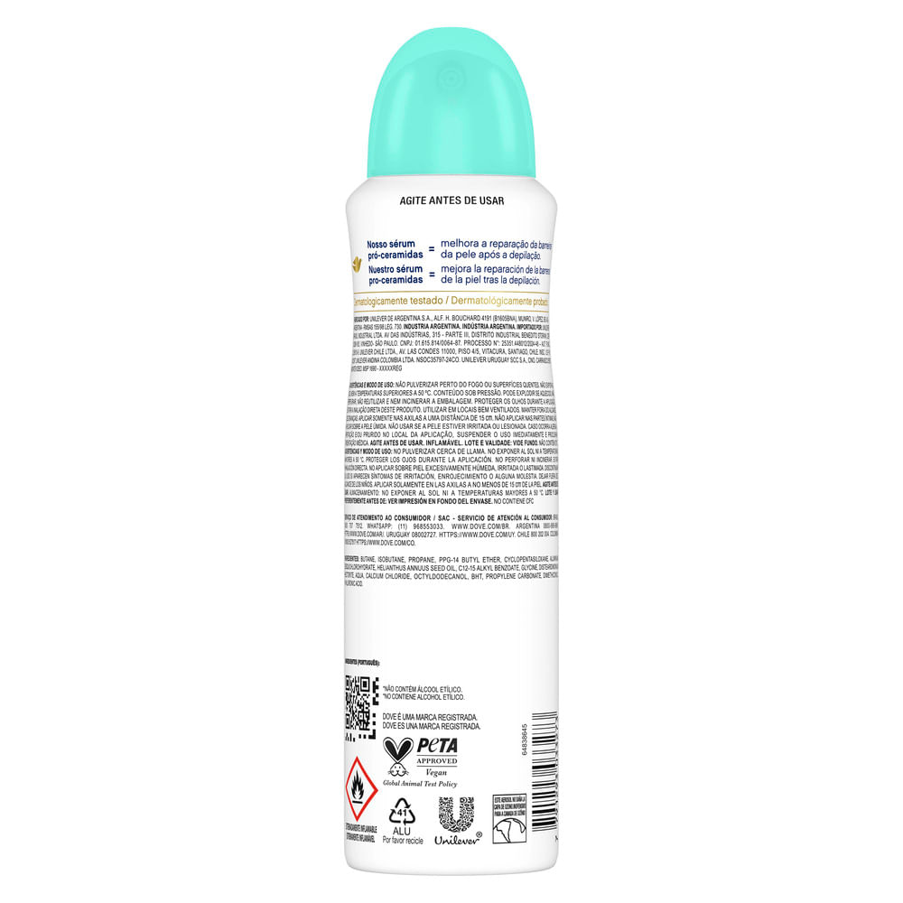 Todos pasamos mucho tiempo en la rutina de cuidado de nuestra piel y nuestro cabello, pero es fácil olvidarse de las axilas. ¡Llegó el skincare para tus axilas con los nuevos Dove! Usá Dove antitranspirante para que puedas sentirte libre de hacer lo que te guste sin preocupaciones. Descubrí el Antitranspirante Dove Sensitive Care con su nueva tecnología Serum Pro-Ceramidas con ácido hialurónico. ¡Es más que un desodorante, es skincare para tus axilas! ¿Tenés piel sensible? ¡El Antitranspirante Dove Sensitive Care es para vos! Sin alcohol ni perfume, te brinda una protección suave y efectiva. ¡Probalo! Cuidá tu piel con Dove. Nuestro Antitranspirante en aerosol contiene la tecnología Serum Pro-Ceramidas para nutrir la piel de tus axilas dejándolas suaves y lindas. ¡Regenerá tu piel después de depilarte y sentite protegida! ¡Cuidá tus axilas delicadas! Todos los cuidados de la piel con el Antitranspirante Sensitive Care, que contiene 0% de alcohol para ayudar a reducir la irritación de las axilas. Olvidate del sudor y el mal olor. Los Antitranspirantes Dove humectan y ayudan a reducir la irritación de la piel, brindando frescura antitranspirante y protegiéndote por 72 horas. ¡Sentite segura y confiada en cada momento! ¡Elegí un producto vegano! El Antitranspirante Dove Sensitive Care no está testeado en animales y cuida de tu piel y del planeta. ¡Sentite bien con tu elección!