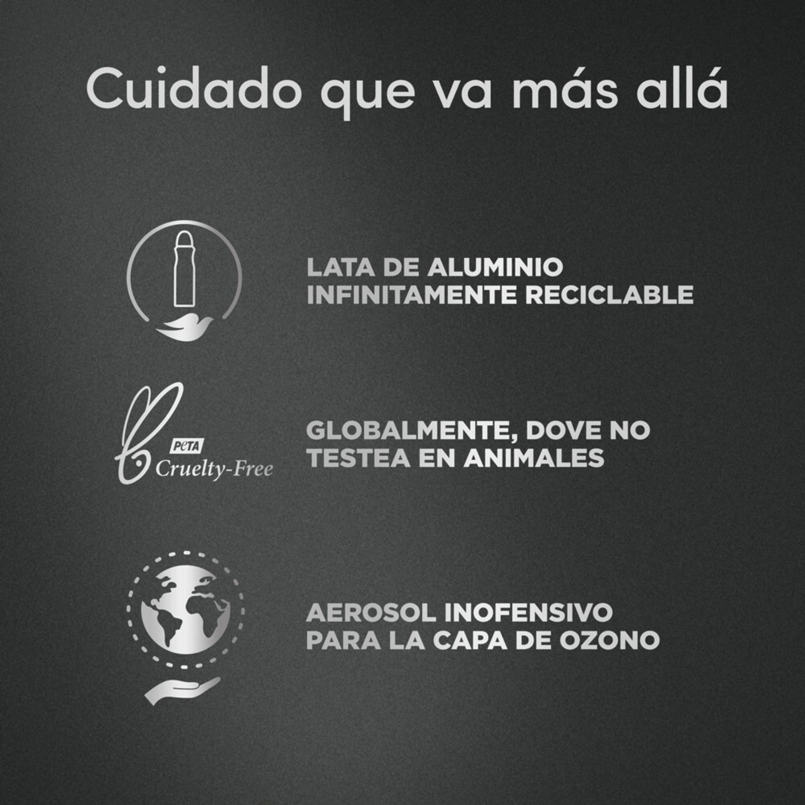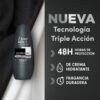 • Este antitranspirante efectivo te protege contra el sudor y mal olor durante 72 horas. • La nueva tecnología triple acción brinda a tu piel protección contra el sudor y mal olor. • Antitranspirante que no deja manchas amarillas o blancas en la ropa • Antitranspirante con ¼ de crema humectante para cuidar tu piel. • Fragancia duradera que te da confianza todo el día. • Dove Men+Care no testea en animales.