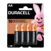 Duracell es sinónimo de alto desempeño y de máximo rendimiento, ya que los productos de la marca proporcionan alimentación fiable y duradera a todos los dispositivos que requieran un toque de potencia adicional. Las pilas alcalinas multiuso AA duran hasta 10 veces más en comparación con las pilas comunes de zinc-carbón (los resultados pueden variar por dispositivo), lo cual las convierte en la opción ideal para obtener energía confiable y de larga duración. Gracias a la tecnología Duracell Duralock, las pilas Duracell sin utilizar retienen su capacidad energética durante un máximo de 10 años de almacenamiento en condiciones ambientales, ofreciéndote la libertad de disfrutar del uso de tus aparatos por mucho más tiempo. Las pilas AA rinden su máximo provecho al ser utilizadas en juguetes, linternas, teclados de computadora y mouses, entre otros dispositivos. Desde el lanzamiento de la marca en el año 1965, Duracell ha crecido hasta convertirse en un ícono de consumo mundial, conocida por su compromiso con la calidad, la confiabilidad y la innovación. En promedio, se venden 63 productos de Duracell cada segundo en todo el mundo y cada vez más dispositivos nuevos requieren energía de pila. El control de calidad de la empresa es exhaustivo y se enfoca en utilizar materias primas óptimas, así como también en realizar pruebas para inspeccionar el rendimiento de cada uno de los productos antes de que salgan al mercado. Duracell te brinda el poder que necesitás cuando lo necesitás. Beneficios – Pack de 4 pilas alcalinas AA de 1,5 voltios – Las pilas Duracell AA multiuso duran hasta 10 veces más en comparación con pilas comunes de zinc-carbón (los resultados pueden variar por dispositivo) – Rendimiento duradero para aparatos tales como juguetes, linternas, teclados de computadora y mouses, entre otros – Las pilas AA sin utilizar conservan su energía durante un máximo de 10 años de almacenamiento en condiciones ambientales – El 85 % del cartón empleado en el embalaje está fabricado con material reciclado – Sin mercurio agregado