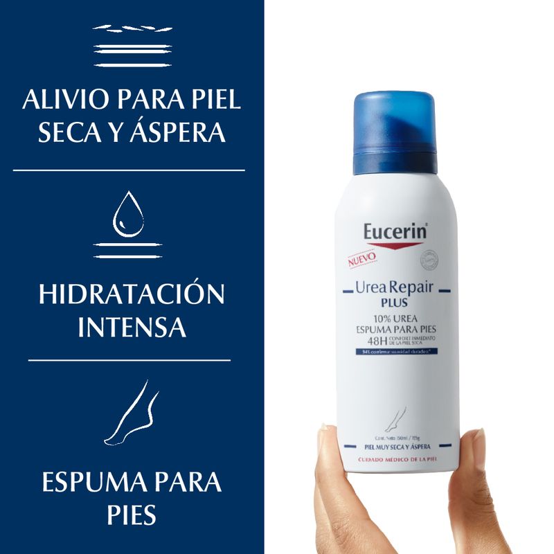 La Espuma para pies UreaRepair PLUS está probada con un 10% de Urea para hidratar intensamente la piel gruesa de los pies, revitalizar y fomentar la regeneración de la piel. Su fórmula también contiene Ceramidas, ingredientes que fortalecen la barrera de la piel, ayudando a prevenir la pérdida de hidratación. Brinda alivio inmediato por 48 horas. Su textura ultraligera se absorbe rápidamente, sin dejar una sensación grasa ni pegajosa. Tiene un agradable aroma y es ideal para pieles muy secas o ásperas.