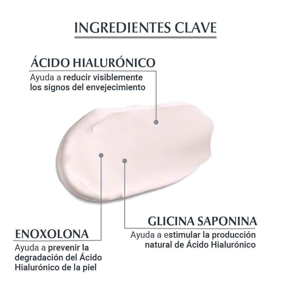 La Crema antiarrugas de día Eucerin HYALURON-FILLER + 3x Effect se diseñó para generar un efecto relleno de arrugas profundas. Su fórmula con Ácido Hialurónico, ayuda a reducir visiblemente los signos del envejecimiento; Glicina Saponina, estimulando la producción natural de ácido hialurónico; y Enoxolona, para prevenir la degradación del ácido hialurónico de la piel. Contiene FPS 30 y es ideal para todo tipo de pieles