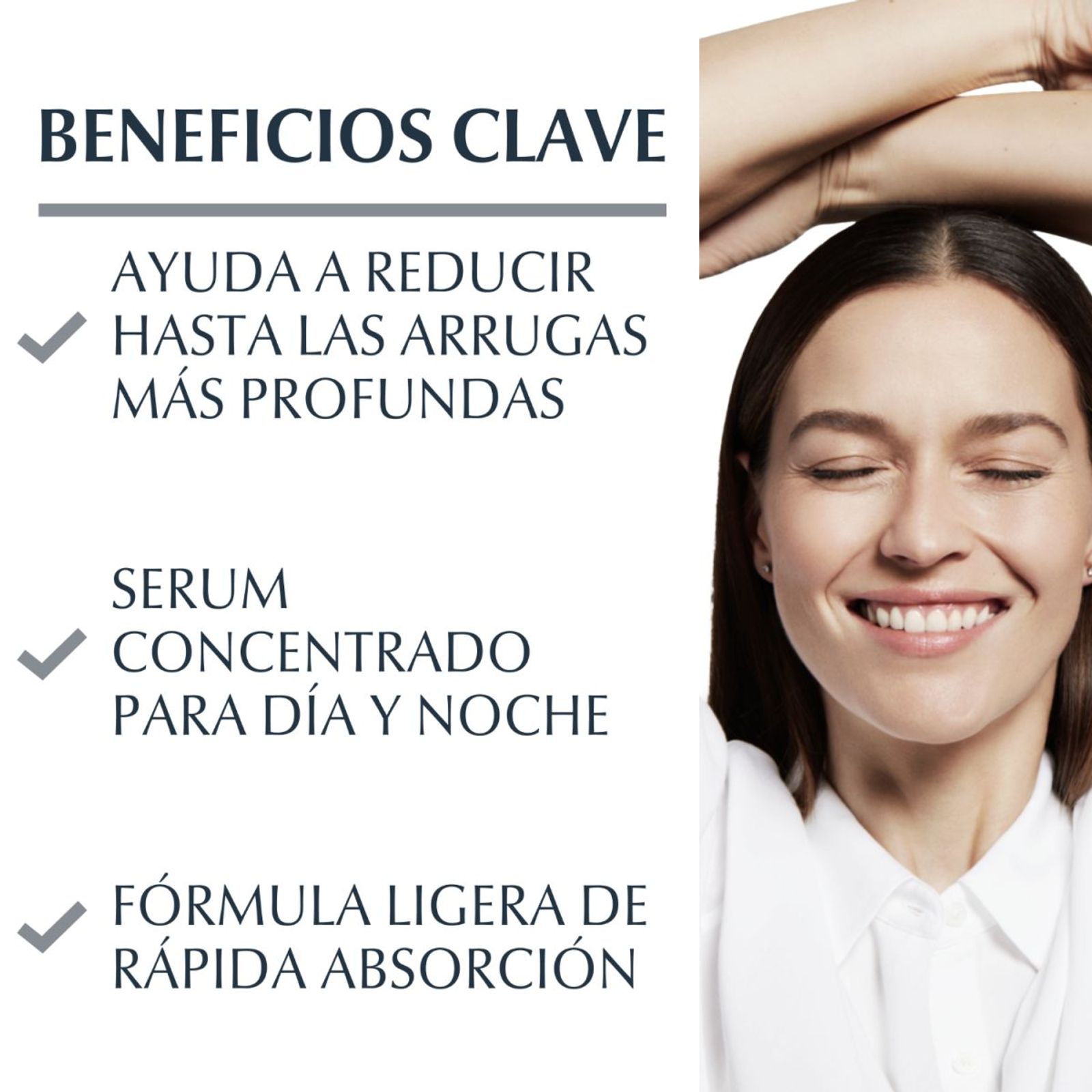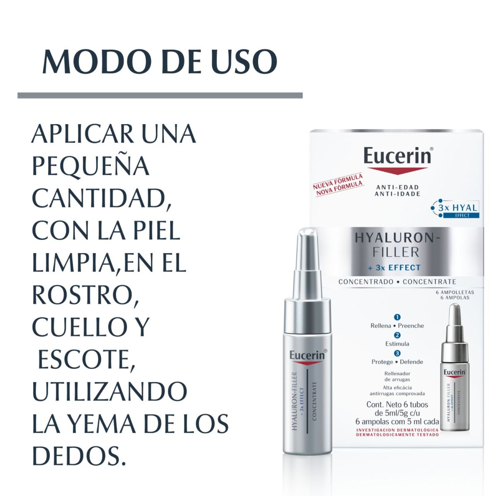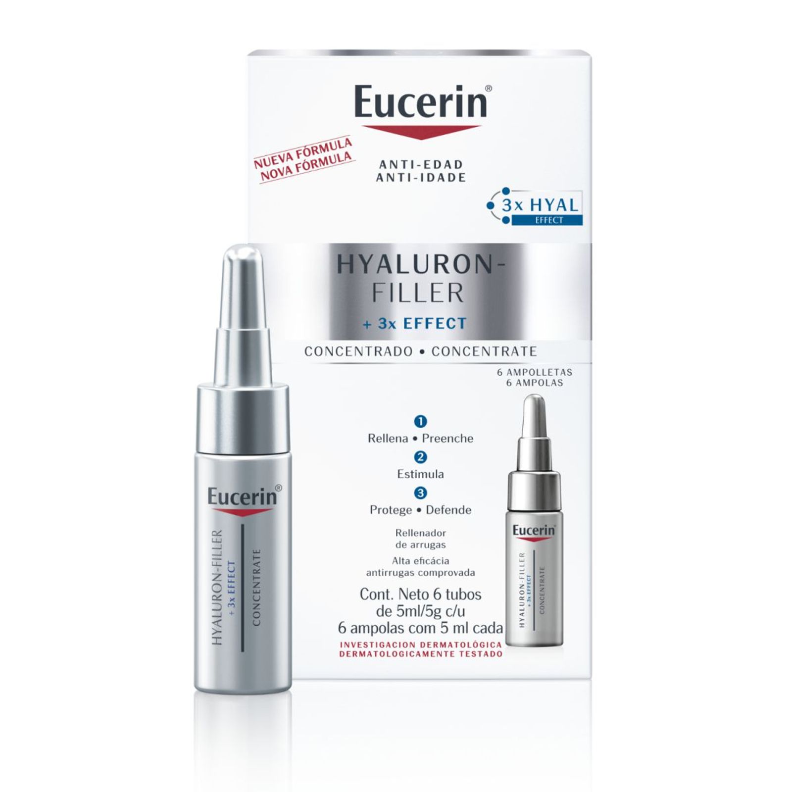 El Sérum antiarrugas Eucerin HYALURON-FILLER + 3x Effect Concentrate es un producto intensivo y avanzado para reducir activamente la profundidad de las arrugas. Su fórmula combina Ácido Hialurónico de cadena molecular corta y larga para actuar y tratar a la piel envejecida, desde donde se originan las arrugas. Además, contiene la Saponina Bioactiva para apoyar la producción natural de Ácido Hialurónico de la piel. Con el uso regular, la piel luce suave y más joven. Está probado en todo tipo de pieles.
