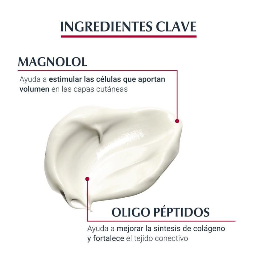 Cuidado voluminizador de día para piel seca con FPS 15 y protección UVA Una crema de día rica y voluminizadora desarrollada con Extracto de Magnolia, Oligopéptidos y Ácido Hialurónico para abordar las causas de la pérdida de volumen.