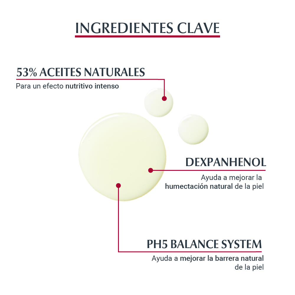 Previene la sequedad de la piel Limpieza gentil y efectiva Preserva las defensas naturales de la piel Deja la piel con una sensación nutrida y sedosa Apto para piel sensible TIPO DE PIEL: Piel sensible PROPIEDADES: Ligeramente perfumado. Libre de jabón alcalino INGREDIENTES: Glycine Soja Oil, Laureth-4, MIPA-Laureth Sulfate, Ricinus Communis Seed Oil, Poloxamer 101, Parfum, Aqua, Propylene Glycol, Panthenol, Tocopherol, Citric Acid, Sodium Citrate