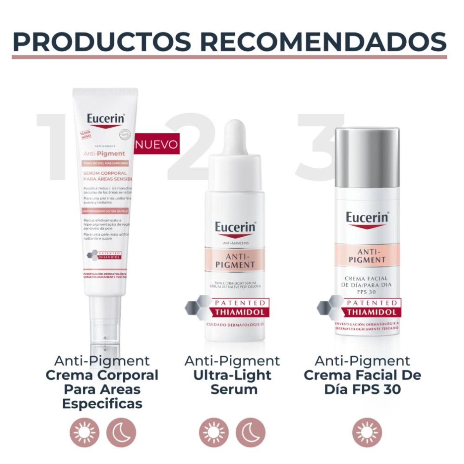 Eucerin Anti-Pigment Serum Corporal para Áreas Sensibles es un sérum corporal especialmente formulado para reducir las manchas oscuras y unificar el tono de la piel en áreas delicadas como axilas, línea del bikini y codos. Su fórmula contiene Thiamidol, un activo que inhibe la producción de melanina, y Ácido Hialurónico, que hidrata profundamente la piel. Además, incluye Licochalcona A, un potente antioxidante que calma y reduce el enrojecimiento. Es apto para pieles sensibles y puede utilizarse después del afeitado o la depilación con cera.