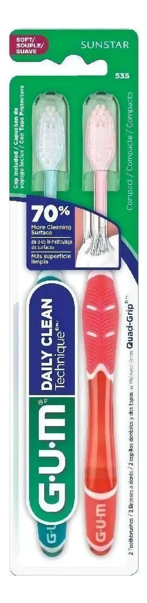 Cepillo diseñado para una óptima limpieza. Sus suaves cerdas anguladas permiten una limpieza eficiente y profunda de los espacios interdentales gracias a su tecnologia Quad-Grip