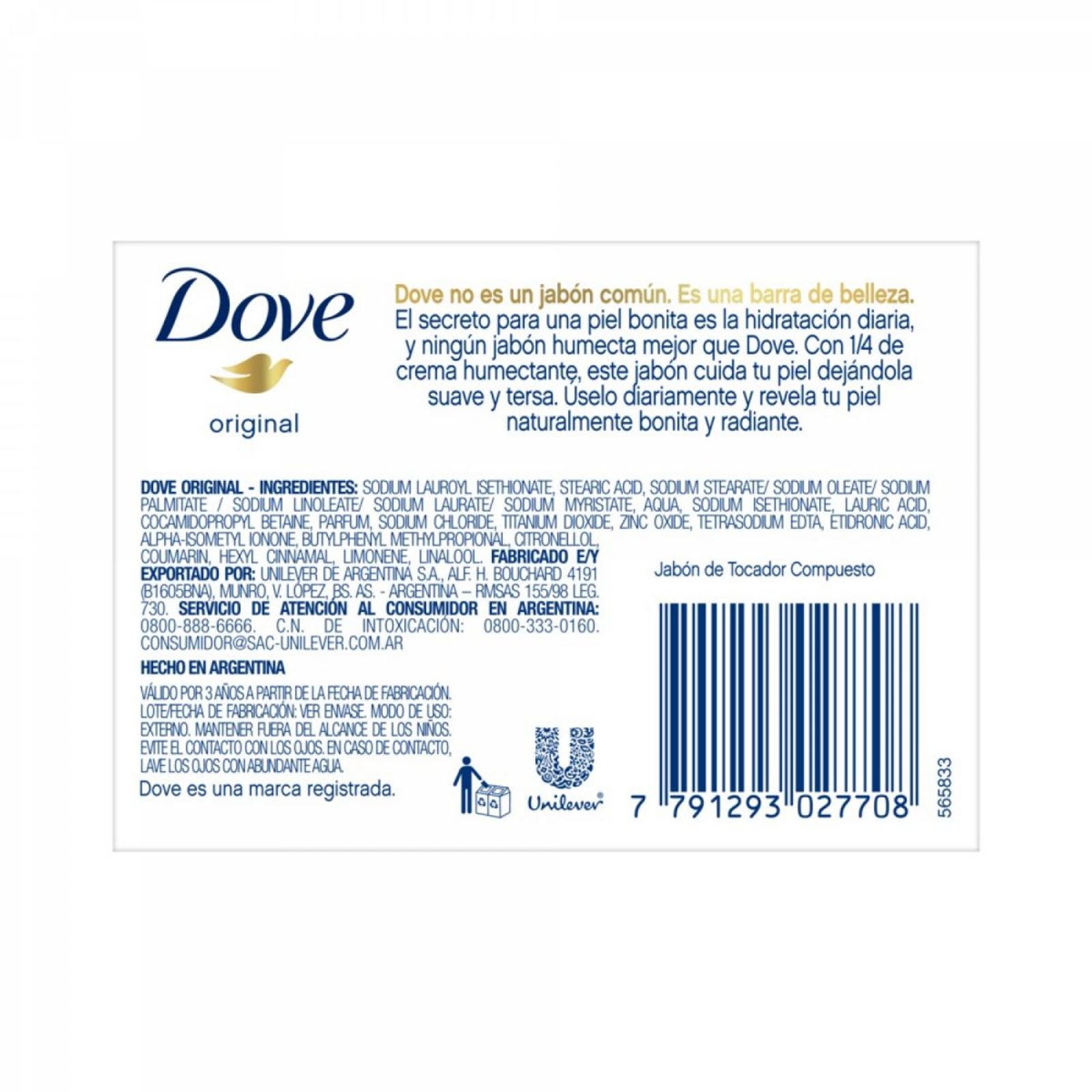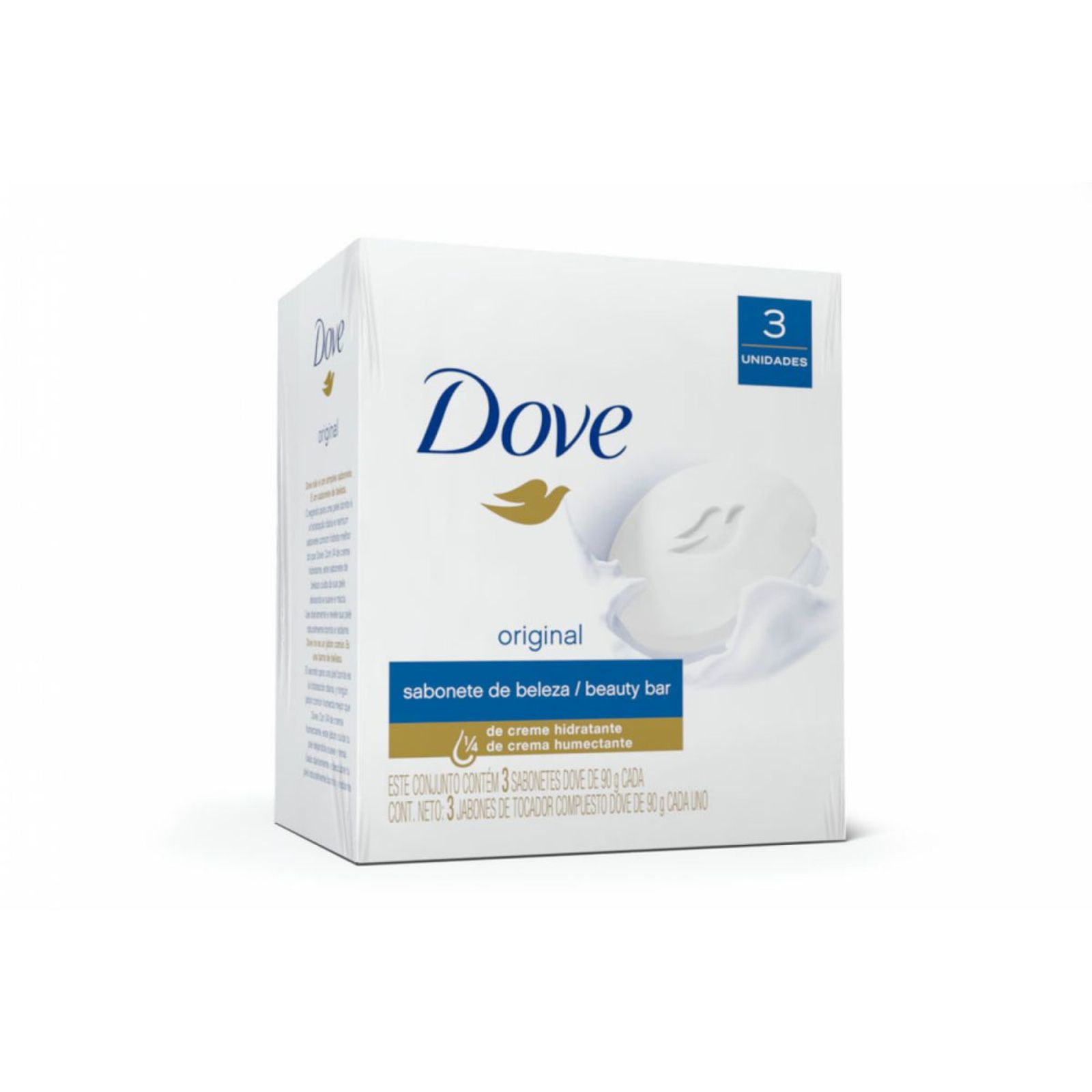 El Pack Jabón Dove Original x 3 un x 90 g c/u te ofrece la suavidad y el cuidado que tu piel necesita. Cada barra contiene 1/4 de crema humectante, una fórmula especial que limpia a profundidad sin resecar, dejando tu piel suave y tersa como la seda. Este pack incluye tres jabones de 90g cada uno, ideales para disfrutar de la suavidad y el cuidado Dove en tu rutina diaria.