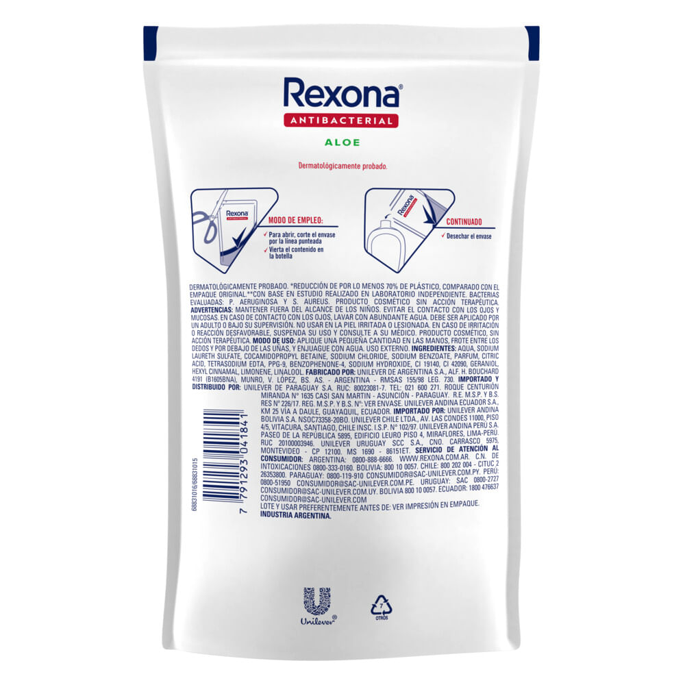 El jabón líquido para manos Rexona Antibacterial Aloe posee una fórmula única que promueve una limpieza profunda y elimina el 99,9% de las bacterias.