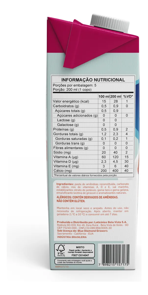 Esta bebida vegetal, hecha a base de almendras, es una alternativa saludable a la leche de vaca, ideal para personas con intolerancia a la lactosa o que siguen dietas veganas. Libre de azúcar añadida, es baja en calorías y contiene nutrientes esenciales como calcio y vitamina D.