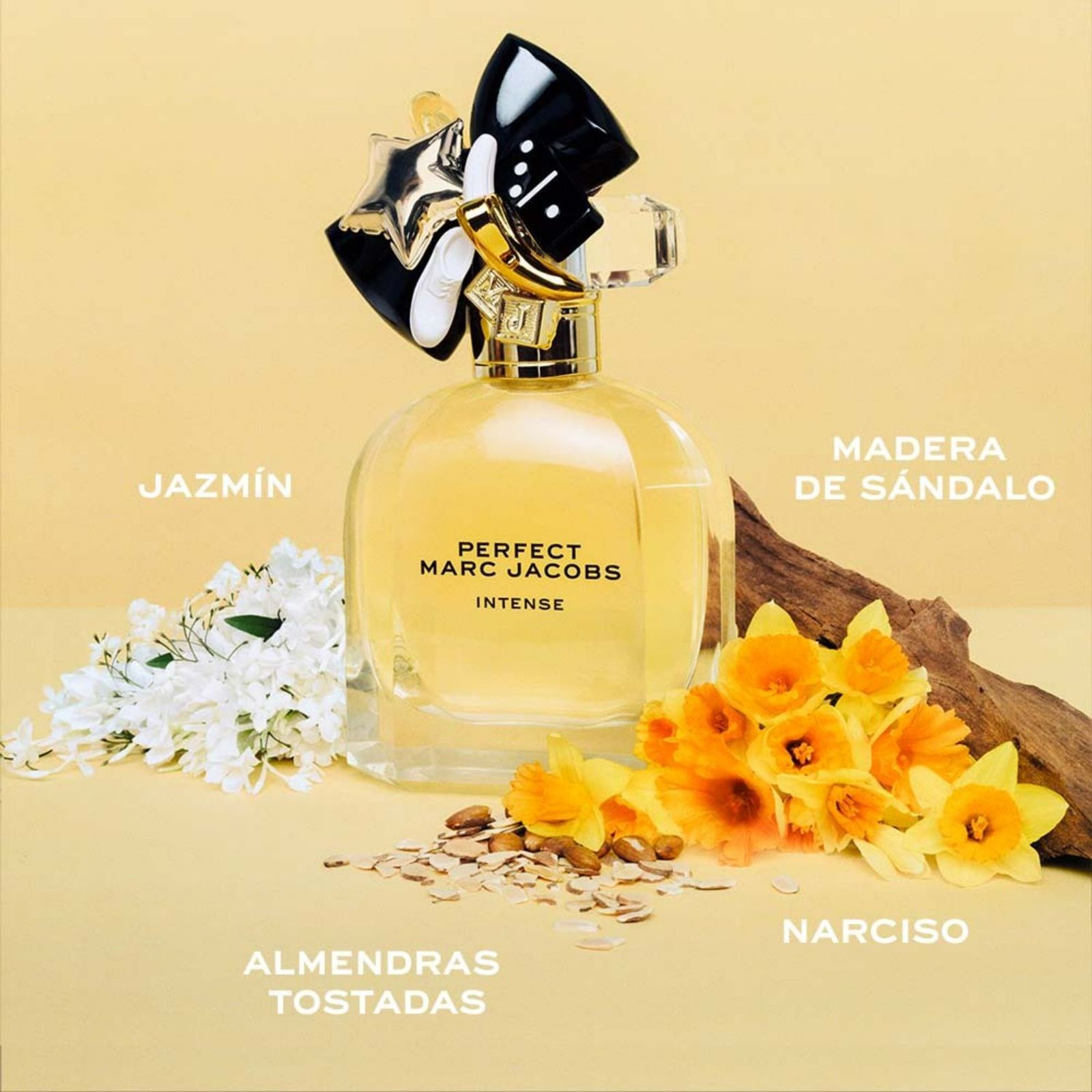 PERFECT INTENSE MARC JACOBS para mujer incluye notas de narciso brillante, jazmín, almendras tostadas y un cálido acabado de sándalo. Celebre el poder de ser real, audaz y ser #PerfectAsIAm. Rico. Dorado. Atrevido. Celebre el poder de ser real, audaz y ser #PerfectAsIAm con PERFECT INTENSE MARC JACOBS para ella.