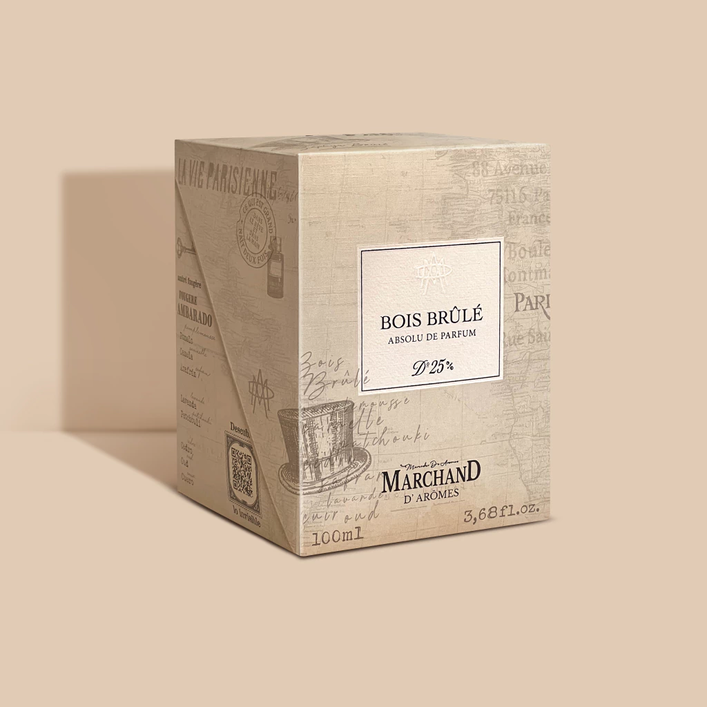 Absolu de Parfum es la expresión más elevada de la perfumería de Marchand d’Arômes. Cada creación está elaborada con esencias francesas de la histórica casa Robertet, ubicada en Grasse —cuna del perfume mundial—, reconocida por su dominio en materias primas naturales. Con una concentración excepcional de entre 25% y 30%, y 100 ml cada fragancia revela una intensidad profunda y una permanencia extraordinaria. Su frasco de cristal ámbar importado protege la pureza de las esencias y está intervenido con delicados grabados de la marca, mientras su tapa imantada y su actuador long-lasting garantizan una experiencia de uso impecable. Cada perfume se presenta en un estuche rígido imantado, concebido como una pieza de colección que guarda la historia detrás de cada aroma, con un QR interactivo que invita a descubrir su universo sensorial: playlists, videos, relatos y acceso directo a la experiencia digital de la marca. La dosificación de esencia, certificada por escribano, asegura transparencia y autenticidad en cada frasco, y cada estuche se entrega dentro de una bolsa individual de diseño exclusivo, confeccionada con materiales de altísima calidad, pensada para realzar la experiencia del lujo contemporáneo.