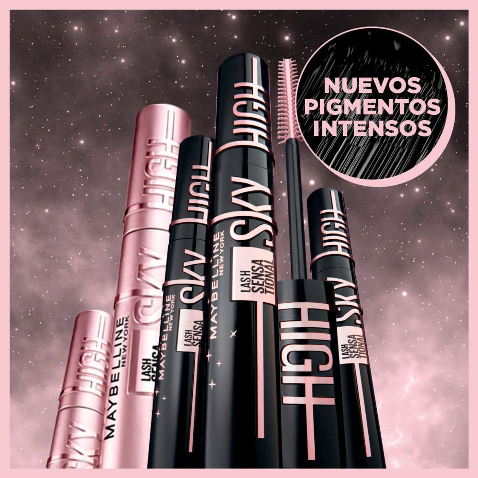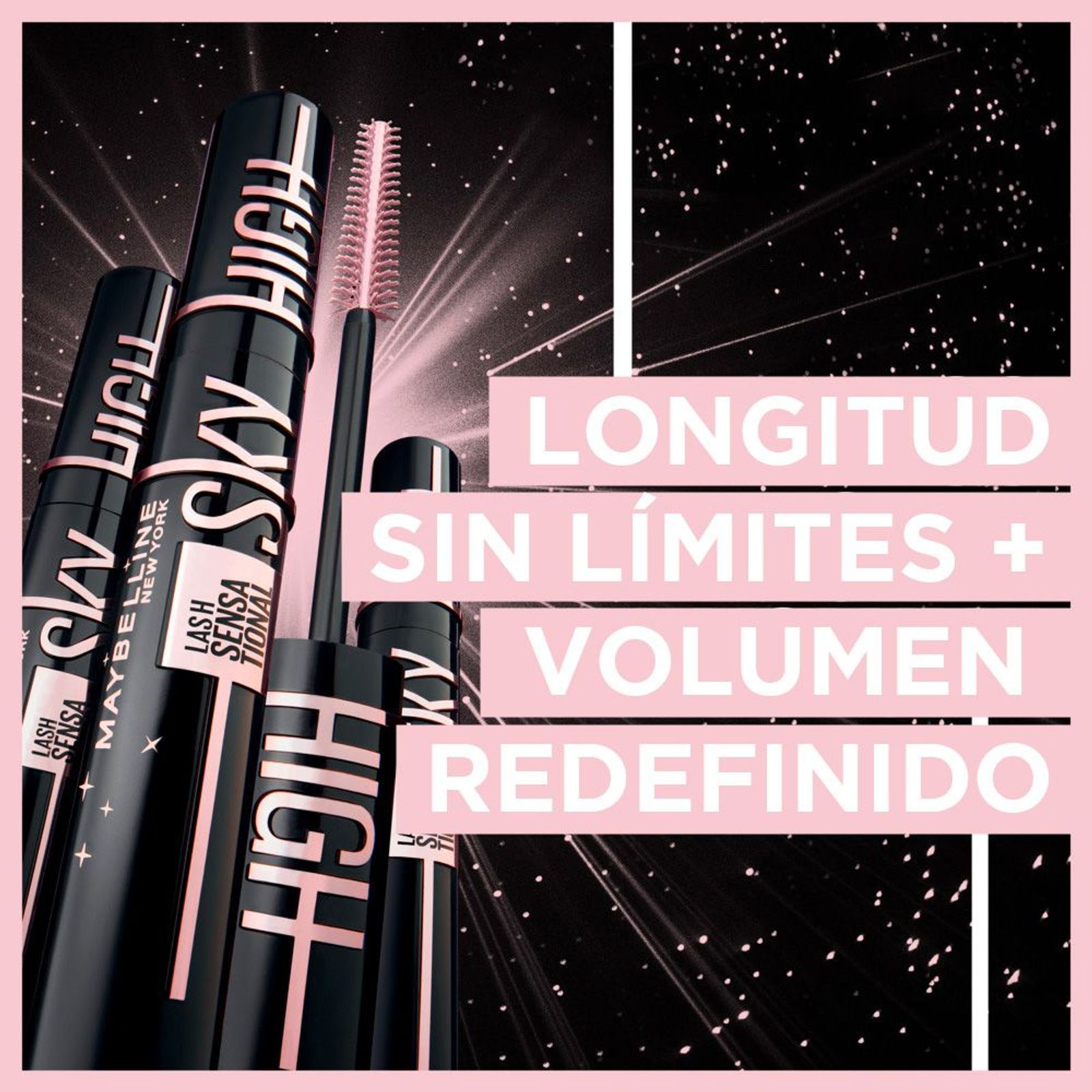 Máscara de pestañas Lash Sensational Sky High Cosmic para una longitud sin límites + volumen redefinido en tus pestañas. Pero… ¿y si vamos más allá? Ahora, mayor intensidad en tu mirada gracias a sus pigmentos ultra negros. ¡Ya no tienes que elegir entre longitud, volumen e intensidad! Su innovador cepillo cónico flexible alcanza cada una de tus pestañas sin dejar grumos y su fórmula con extracto de bambú y pigmentos ultra negros es ligera y súper fácil de aplicar. Consigue unas #PESTAÑASCONALTURA con una intensidad de otra galaxia. Now, the sky is the limit.