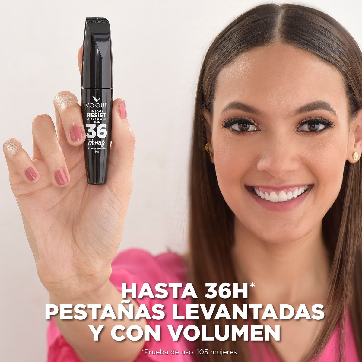 Decilo todo con tu mirada hasta por 36 horas con la máscara de pestañas Resist, su fórmula permite que tus pestañas se vean como recién maquilladas, levantadas y con volumen. A prueba de agua, sudor y humedad con un color negro intenso.