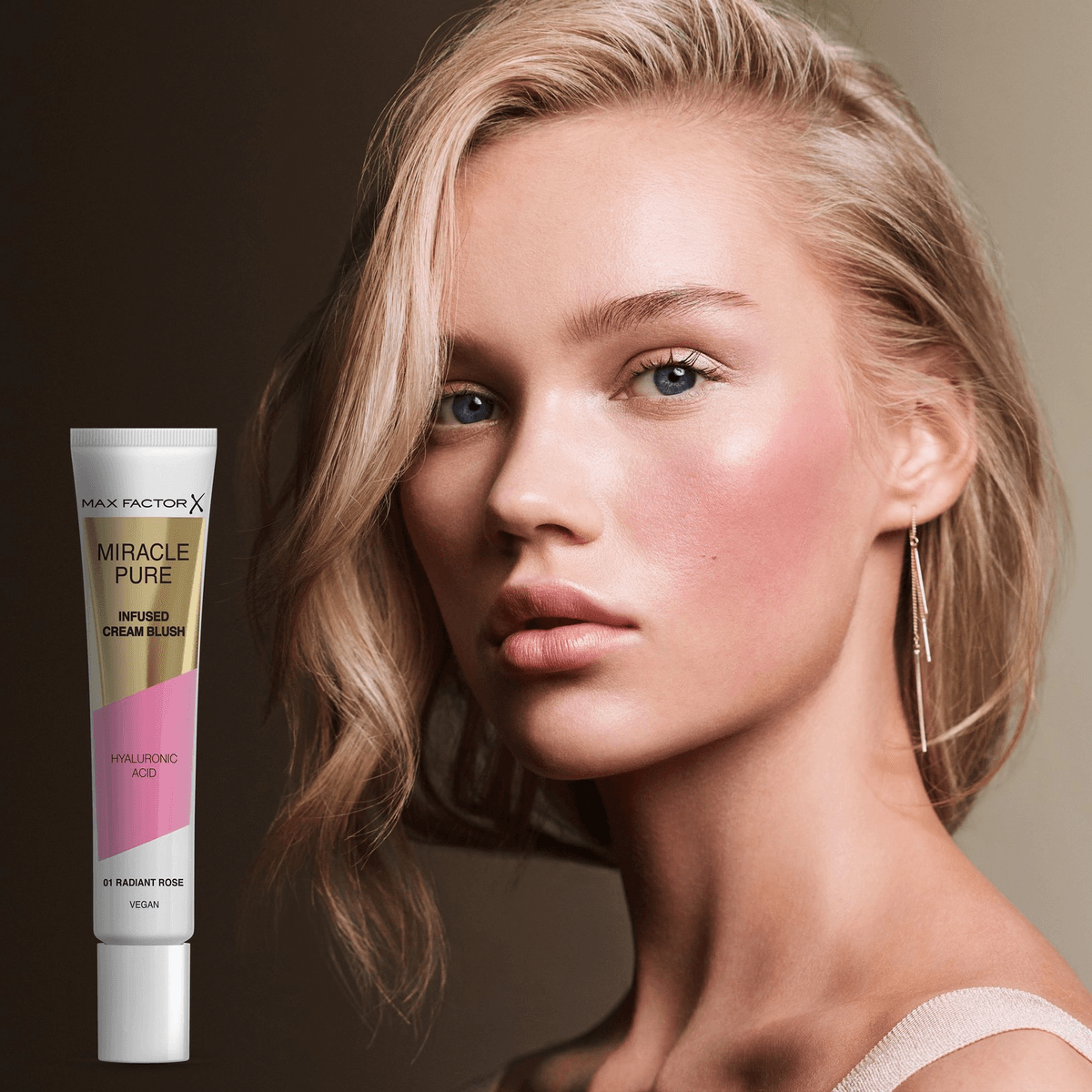Max Factor presenta Miracle Pure Blush, el nuevo colorete en crema que cuida y protege tu piel. Su fórmula 100% vegana incluye ácido hialurónico, escualeno y un complejo hidratante para un brillo fresco y duradero. Este colorete permite rellenar e hidratar tu rostro de la manera más ligera y natural gracias a sus colores vivos y pigmentados de fácil difuminado. Déjate sorprender con el nuevo Miracle Pure Blush, ¡la nueva fórmula de color y cuidado!