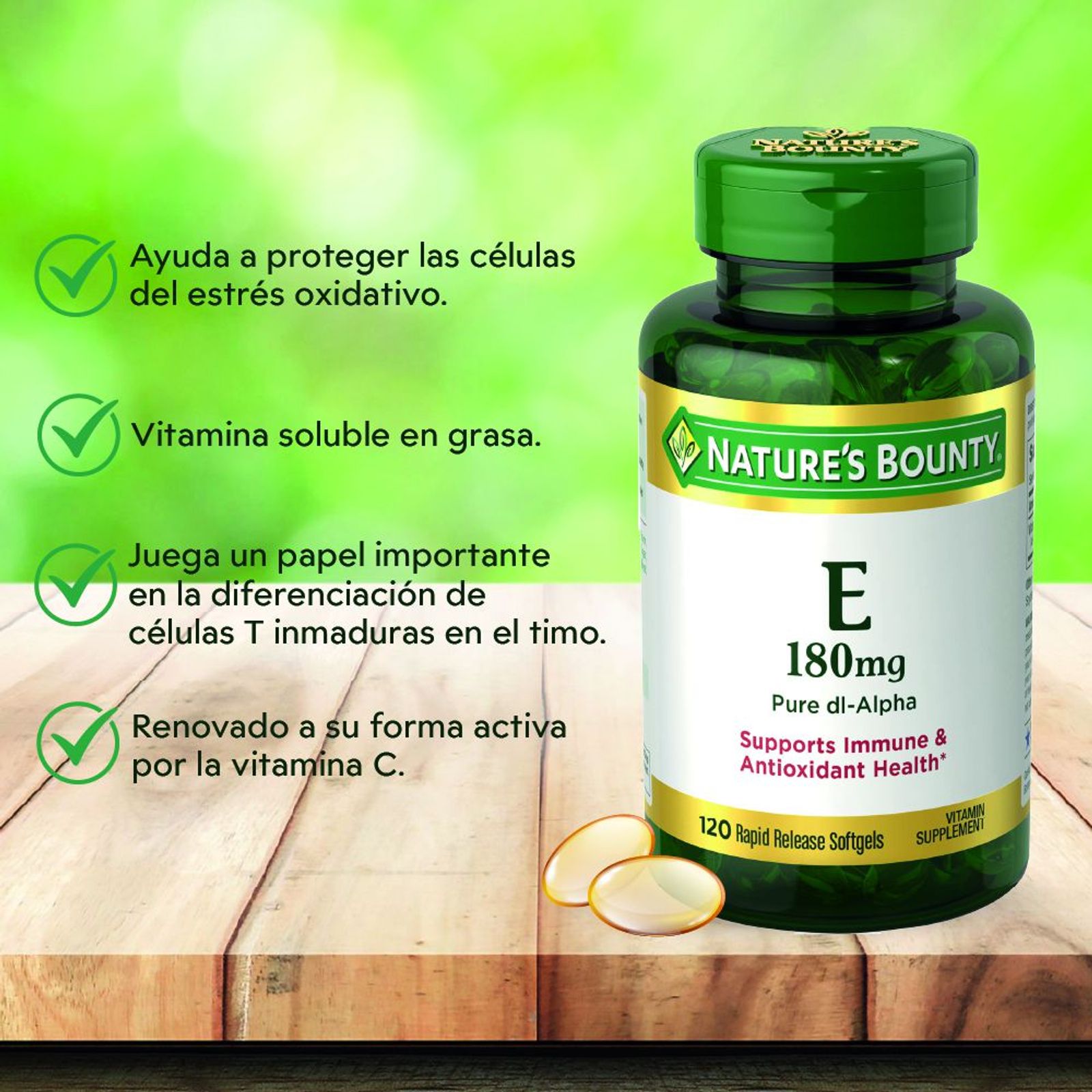 La vitamina E no solo es un potente antioxidante, también es un nutriente esencial que ayuda a apoyar la función inmune y contribuye al bienestar general. Pueden contribuir al envejecimiento prematuro de las células. Nuestra vitamina E está hecha teniendo en cuenta la pureza, por lo que tiene la garantía de un suplemento de calidad.