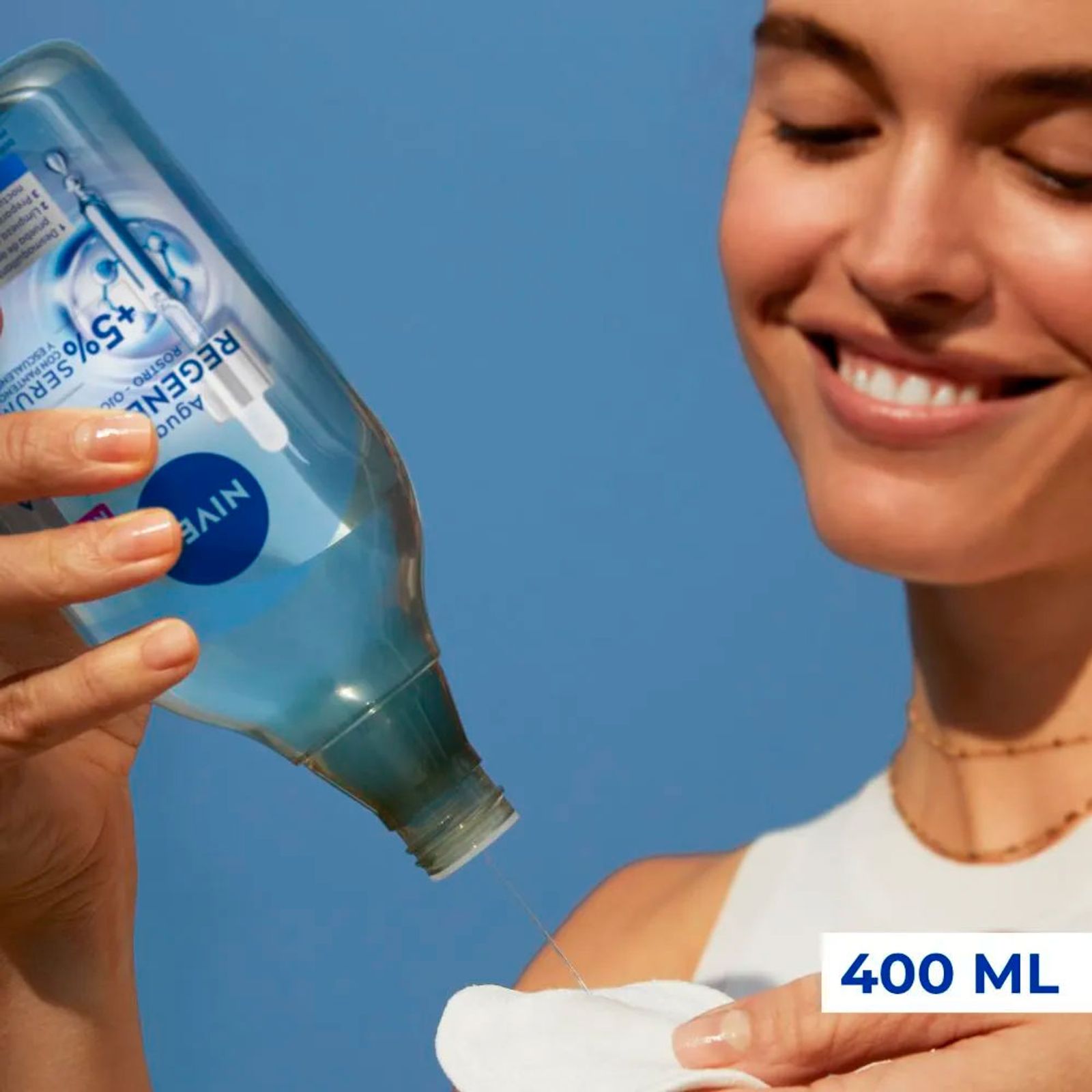 El Agua Micelar NIVEA Regeneradora está enriquecida con Complejo de Aminoácidos y Suero al 5% con Pantenol y Escualano. Restaura la humedad y se regenera para una piel descansada a la mañana siguiente. Es un desmaquillante eficaz para el maquillaje a prueba de agua, las impurezas y la suciedad con unas ligeras pasadas, sin dejar residuos grasos. No es necesario frotar, por lo que limpia la piel con suavidad. Usar en rostro, ojos y labios. No contiene perfume, está aprobada dermatológica y oftalmológicamente. Adecuada para pieles sensibles y secas.