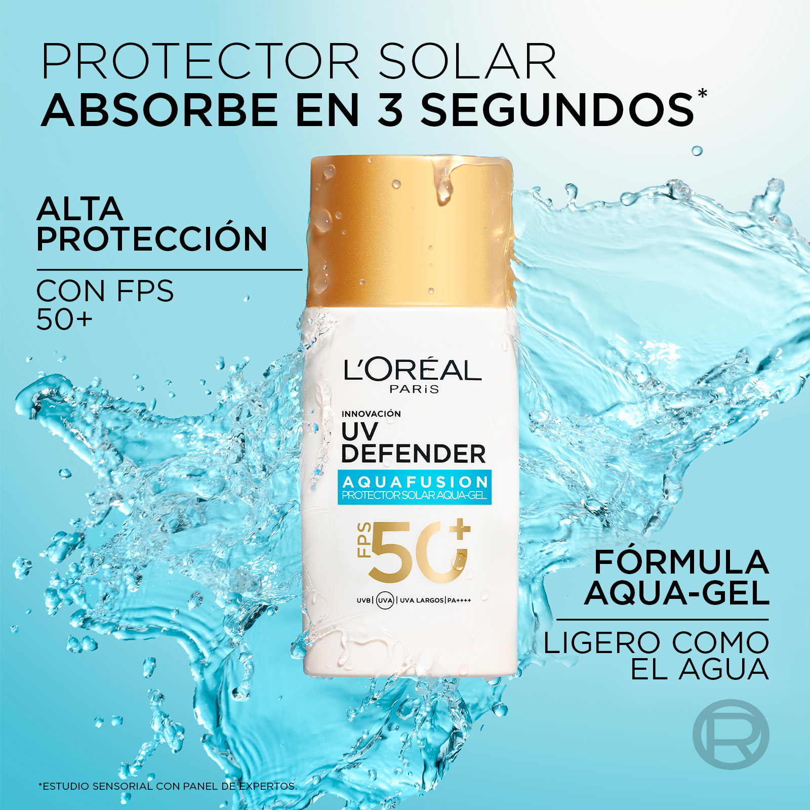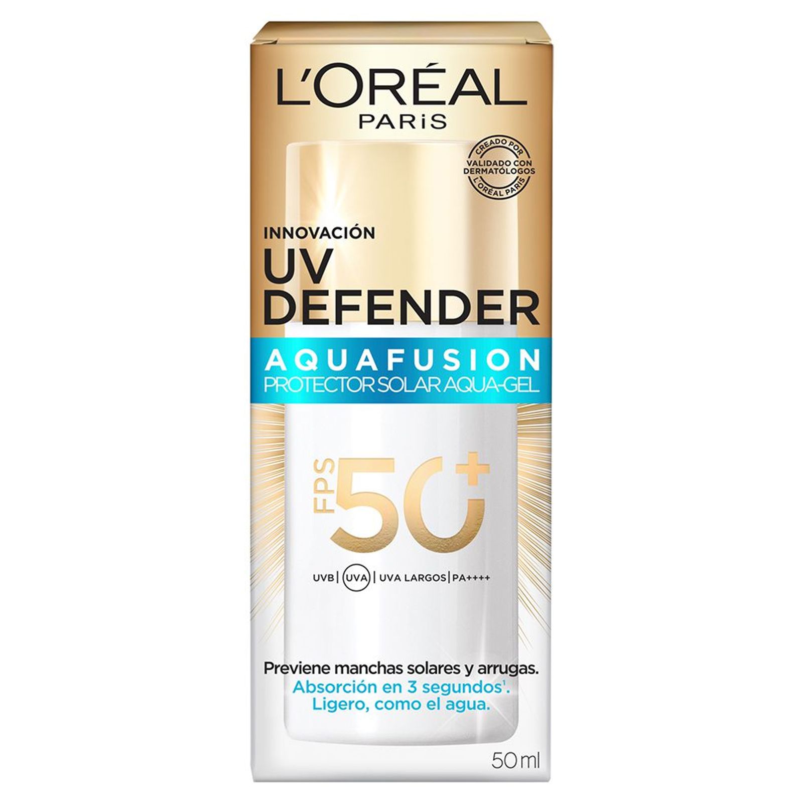 Nuevo Uv Defender Aquafusion Fps 50+. Protector Solar Aqua-gel con textura ligera como el agua, que se absorbe en 3 segundos. Refresca la piel y controla la oleosidad todo el día para una sensación de piel limpia sin dejar residuos blancos. Protege la piel de signos visibles de los daños por rayos UVB y UVA, hidratando por 24hs.