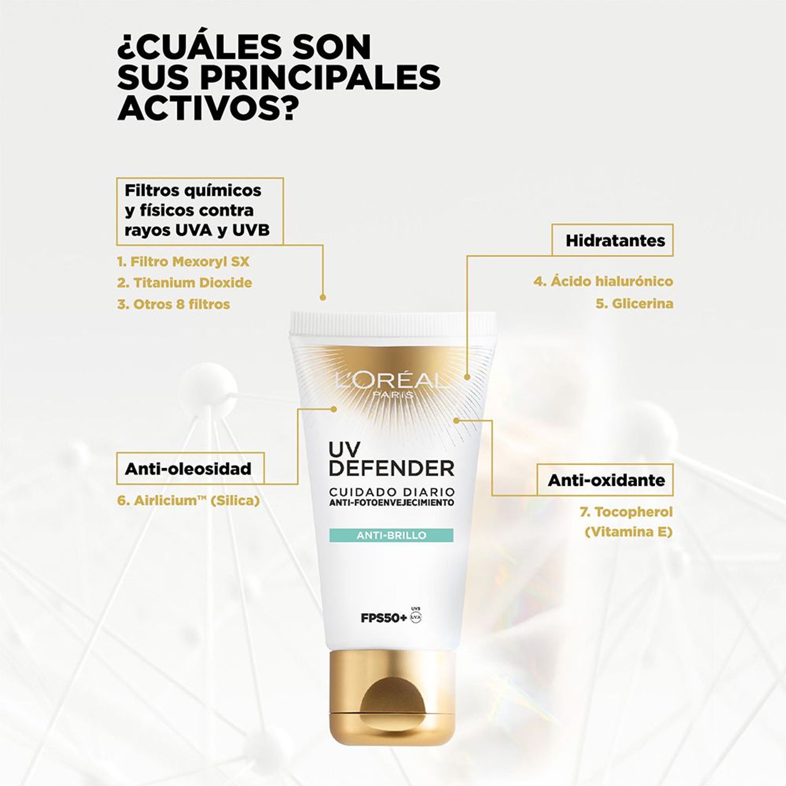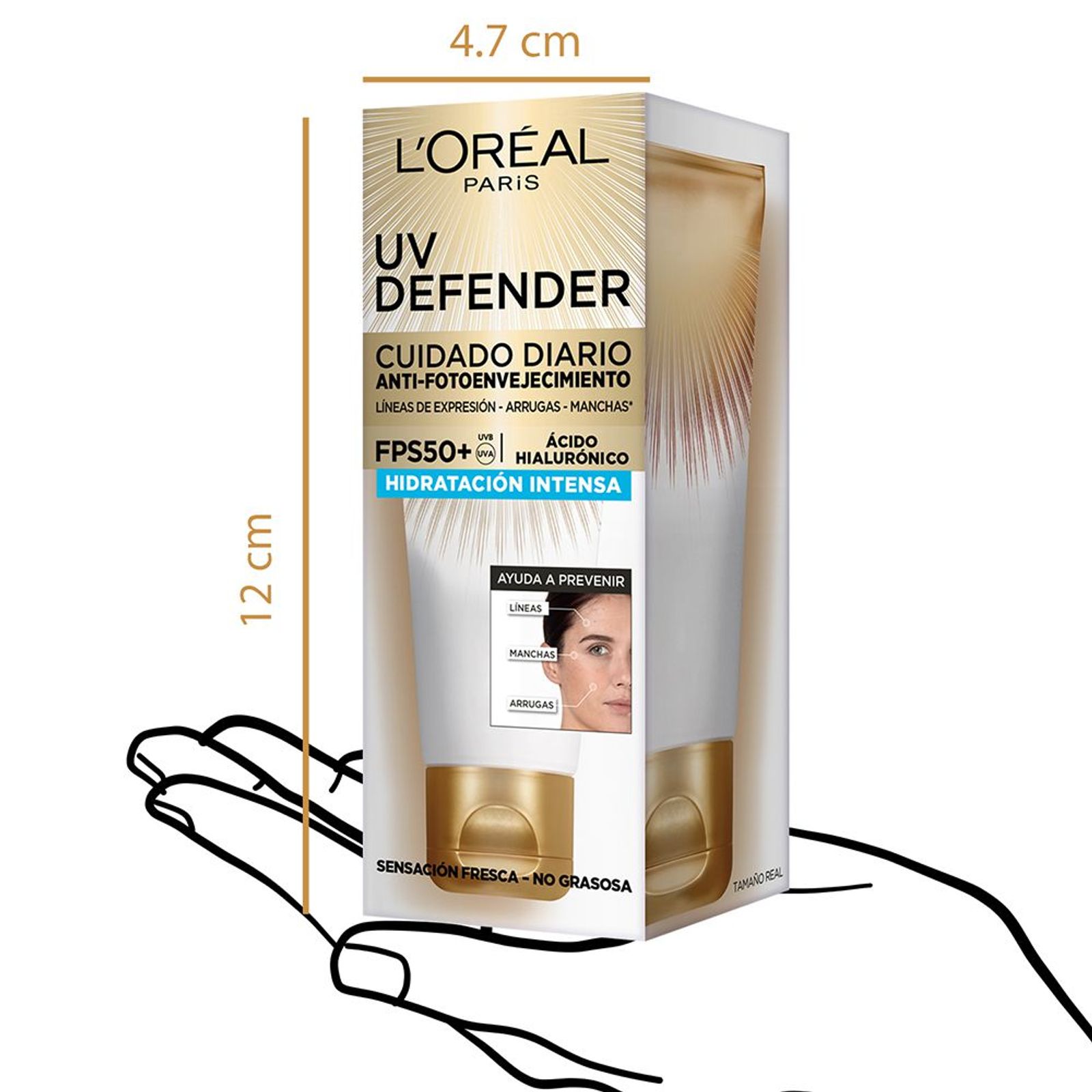 Conocé el nuevo UV Defender FPS50+ de L’Oréal Paris, un protector solar de textura ligera y rápida absorción, capaz de resuguardar tu piel diariamente de los rayos UVB y UVA, máximos responsables de los signos de envejecimiento prematuro (manchas oscuras, líneas de expresión y arrugas) y del cáncer de piel. Además, mantiene tu piel hidratada gracias a su contenido de ácido hialurónico. Probálo en su versión Hidratante o Anti-brillo; disponible en tres tonos: neutro, medio y claro. Apto para todo tipo de piel.
