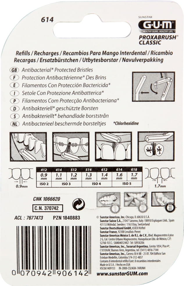 El cepillo fino con cerdas antibacteriales entra en los espacios interdentales para remover la placa. El ángulo de 90 Grados facilita la limpieza de los dientes posteriores.