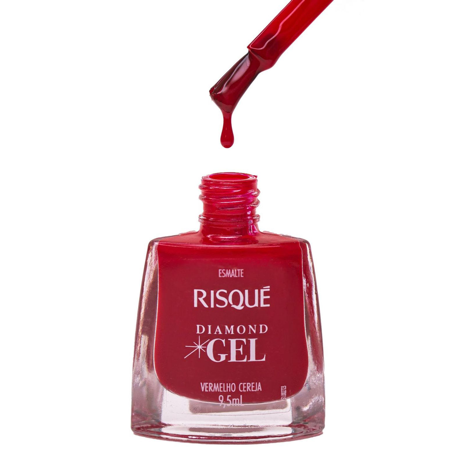 El Esmalte Risqué Diamond Gel tiene alto brillo y durabilidad. El cepillo contiene 800 cerdas que aumentan la cobertura y precisión en la aplicación del esmalte. Su fórmula hipoalergénica está libre de sustancias que provoquen alergias. Para asegurar el efecto gel, después de aplicar el esmalte de color, aplique el Top Coat Fijador Diamond Gel Risqué, que fue especialmente creado para brindar durabilidad y alto brillo.